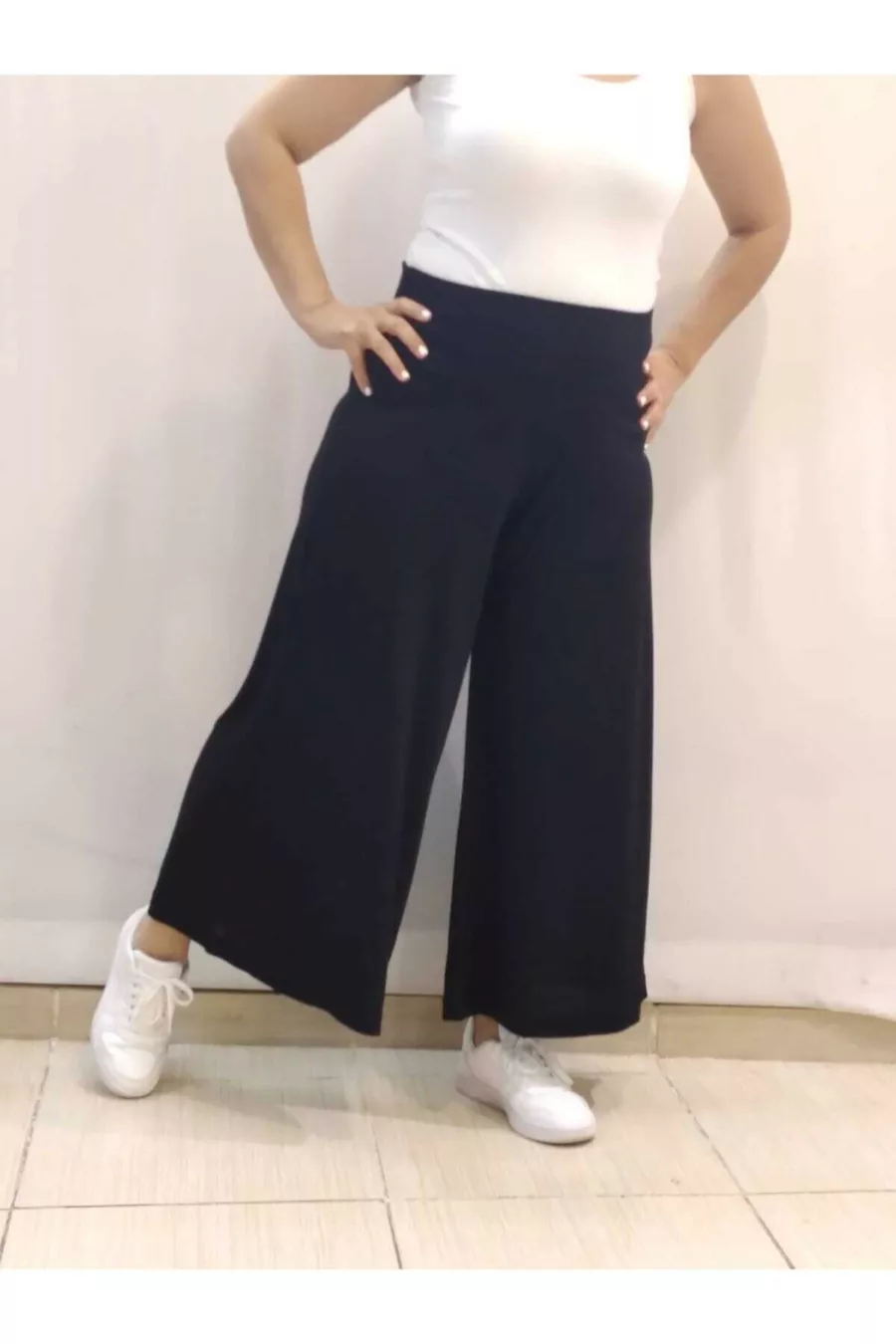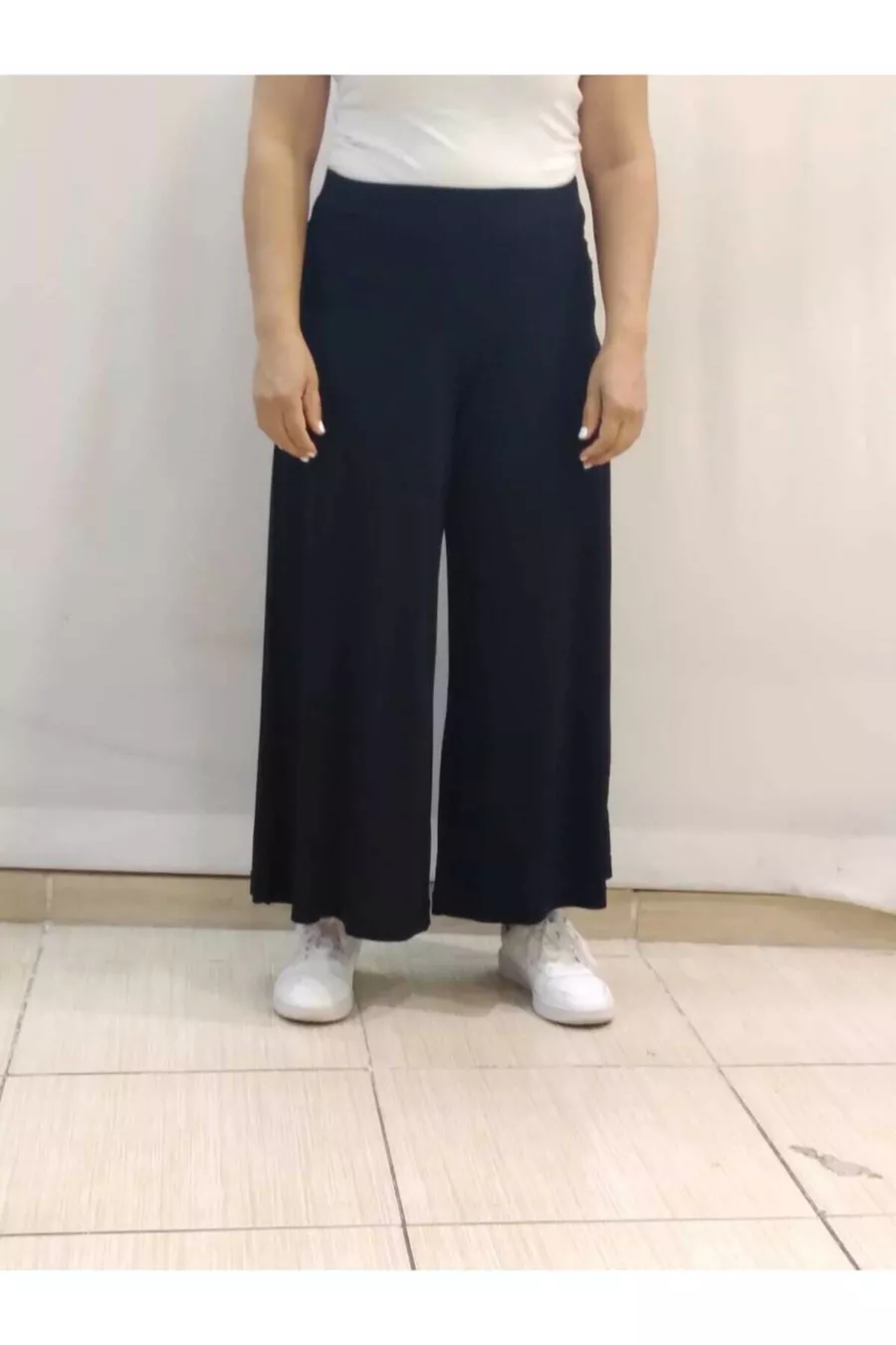 Material: Viscose Silhouette: Regular Fabric Type: Knit Closure Type: Buttoned Leg Type: Wide Leg Waist: Regular Waist Color: Black Fit: Plus Size Pattern: Solid Occasion: Casual/Everyday Length: Long Additional Feature: Elastic Waist Thickness: Medium Washing Instructions: T09 Sustainability Detail: No Belt/Strap Status: Without Belt Season: All Seasons Origin: TR