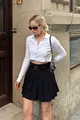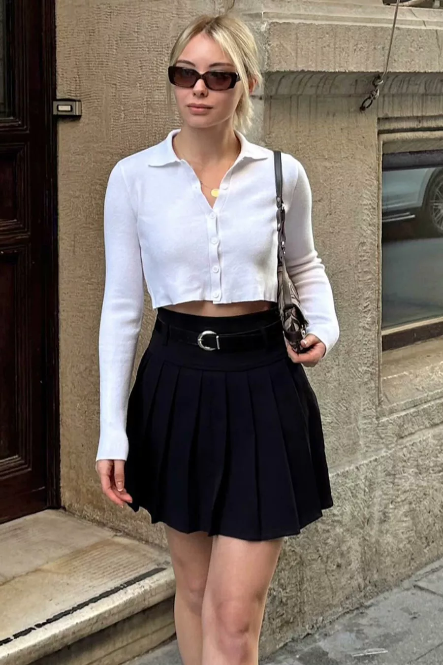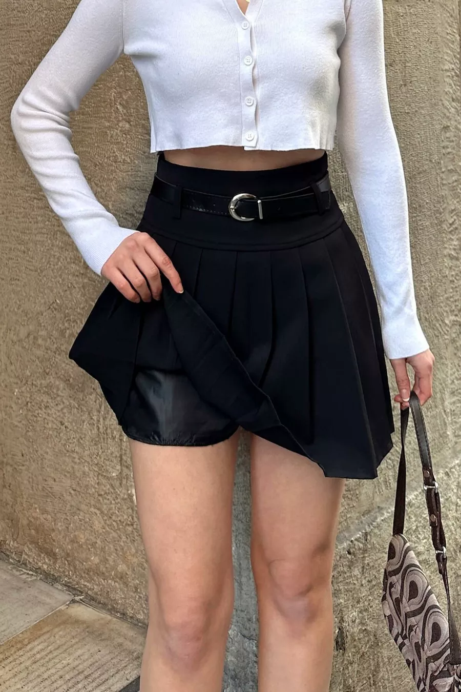 Black Fully Pleated Mini Skirt with Belt and Lined Shorts for Women
