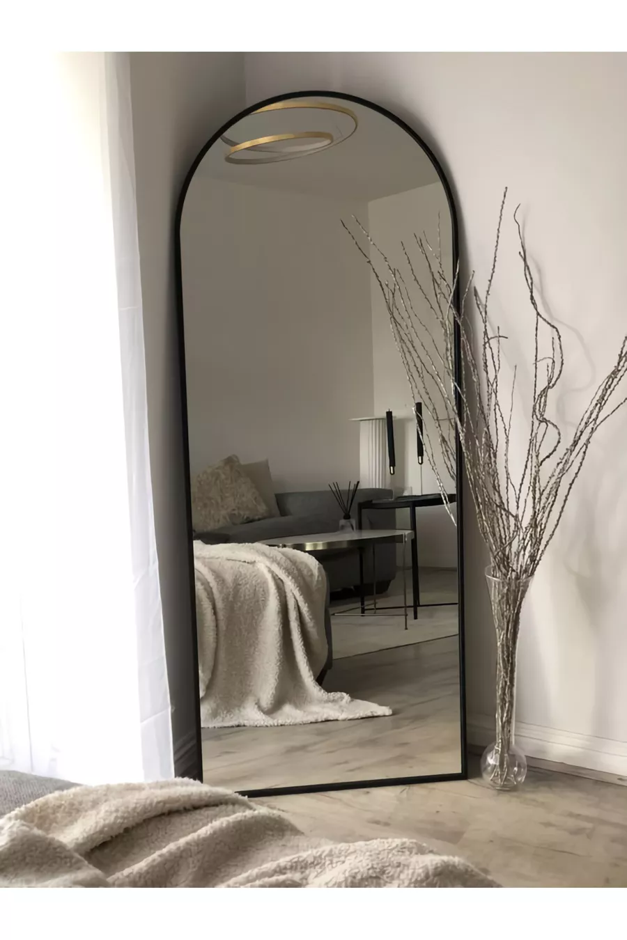 Material: Metal Color: Black Size/Dimension: 70 x 180 Number of Pieces: 1 Piece Shape: Oval Type: Free-standing Full-Length Mirror Feature: Free-standing