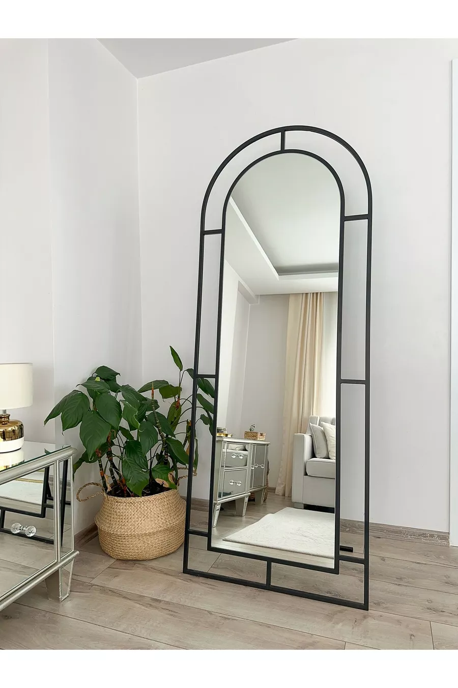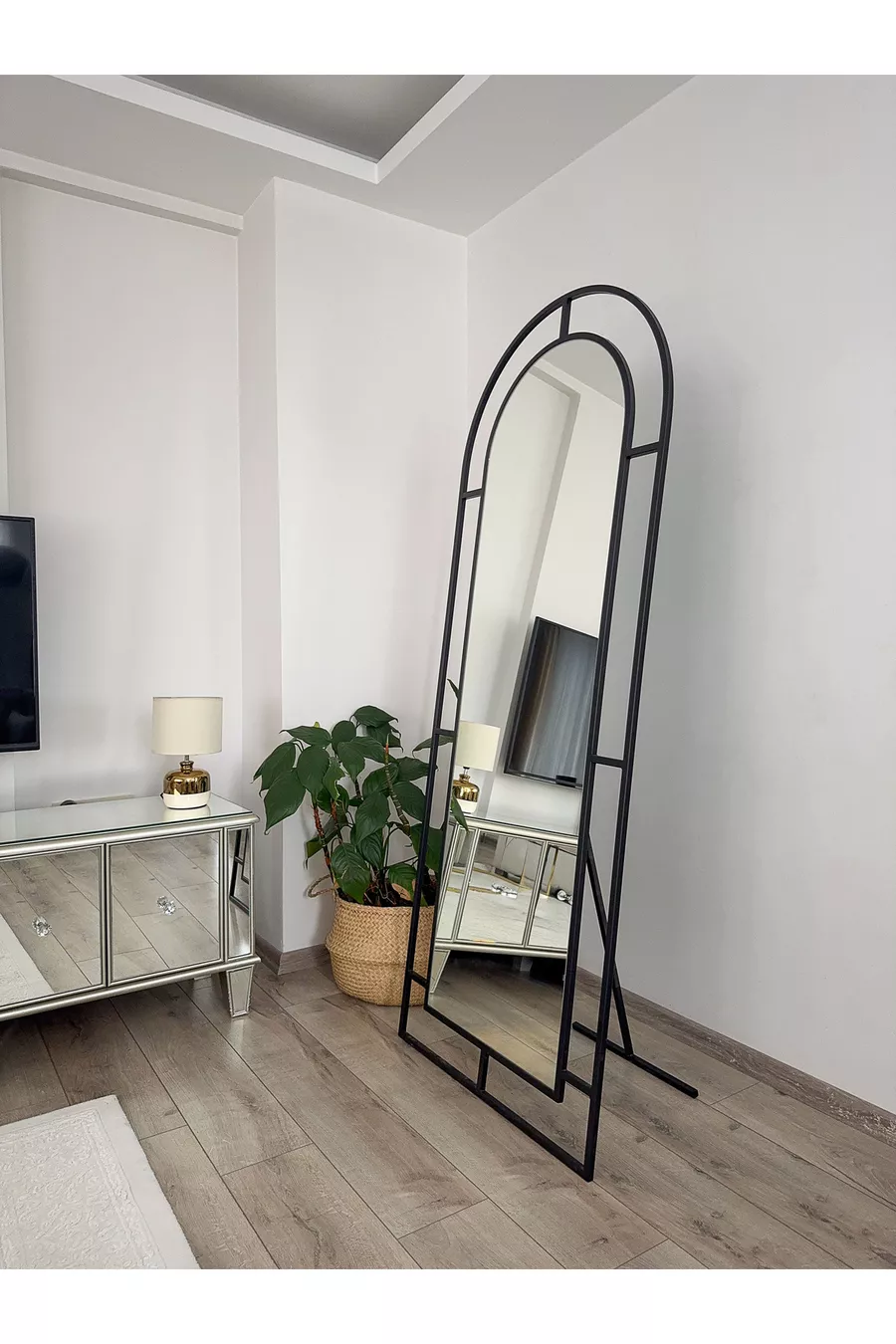 Black Metal Frame Cm Window Model Oval Leg Full-Length Mirror