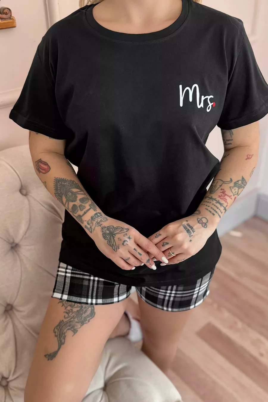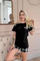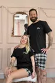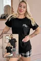 Sustainability Detail: No Sleeve Type: Standard Sleeve Pattern: Printed Neck Type: Crew Neck Pant Length: Short Color: Black Material: 100% Cotton Product Type: Plain Product Detail: Elastic Collection: Homewear Set: T-shirt-Shorts Sleeve Length: Long Technique: None Fit: Relaxed Fabric Type: Knit Waist: Regular Waist Weave Type: Suprem Number of Pieces: 2 Pieces Silhouette: Basic Persona: Cool & Comfort Occasion: Casual Additional Feature: No Additional Feature Material Composition: 100% Textile Washing Instructions: T44 Pant Type: Elastic Hem Package Contents: 2 Pieces Length: Standard Season: Summer