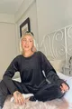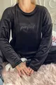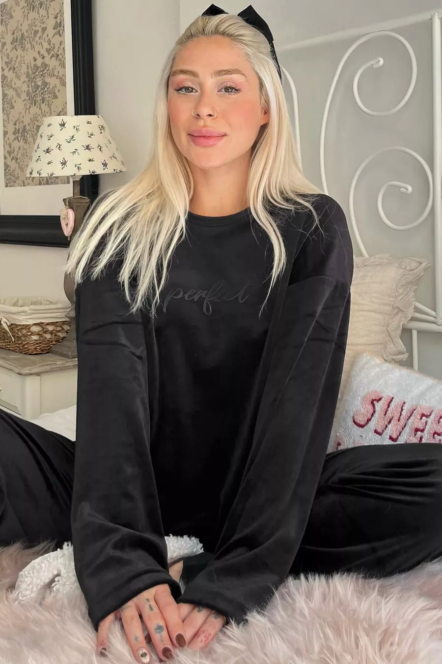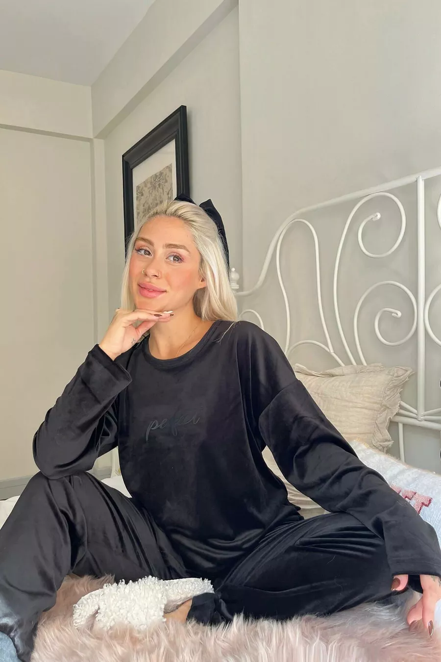 Sleeve Type: Long Sleeve Sustainability Detail: No Pattern: Patterned Neck Type: Crew Neck Pant Length: Long Color: Black Material: Velvet Product Type: Printed Product Detail: Pant Collection: Homewear Bottom-Top Set: Sweatshirt-Pants Sleeve Length: Long Technique: Piece Print Fit: Regular Fabric Type: Knitted Waist: Regular Waist Weave Type: Velvet Number of Pieces: 2 Pieces Silhouette: Regular Persona: Cool & Comfort Setting: Lounge/Home Additional Feature: No Additional Feature Material Composition: 30% Bamboo, 10% Lycra, 60% Viscose Washing Instructions: T44 Pant Type: Cuffed Pant Package Contents: 2 Pieces Length: Regular