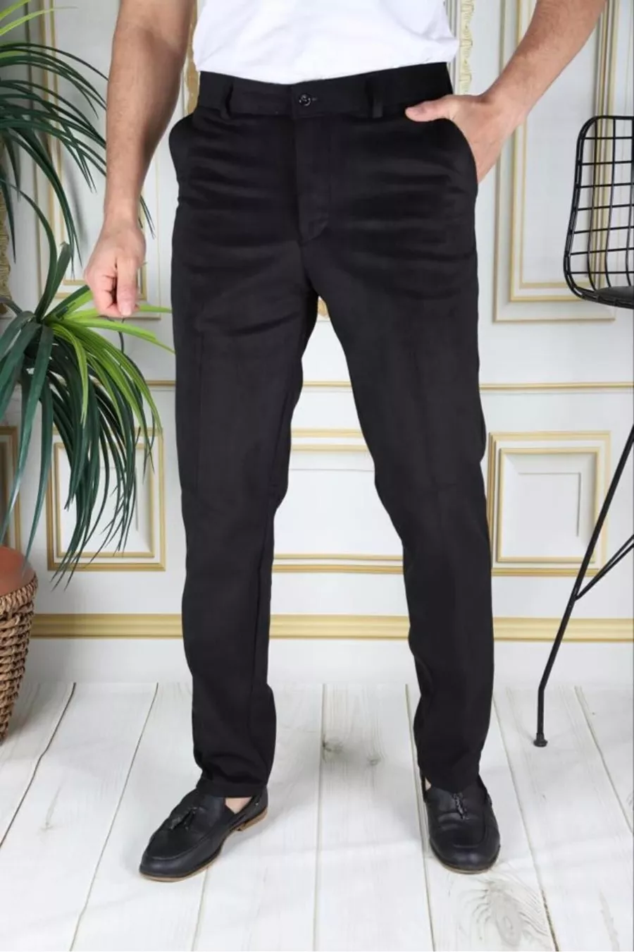 Black Polar Velvet Pants Stretch Thick Corduroy Classic Relaxed Fit Side Pockets Phantom Jeans