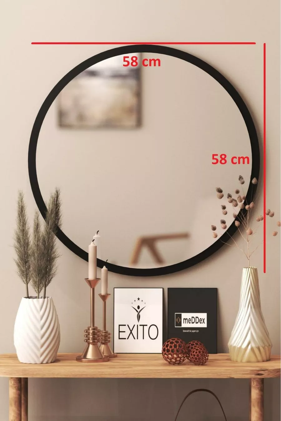Material: Wood Color: Black Size/Dimensions: 60 x 60 Number of Pieces: 1 Piece Shape: Round Type: Makeup Mirror Feature: Long