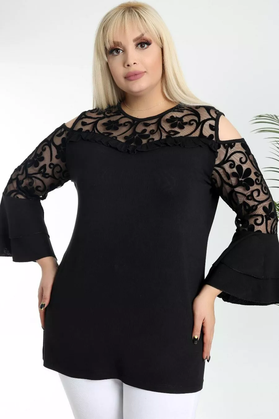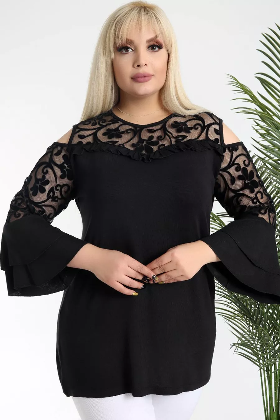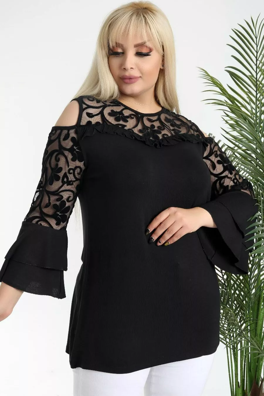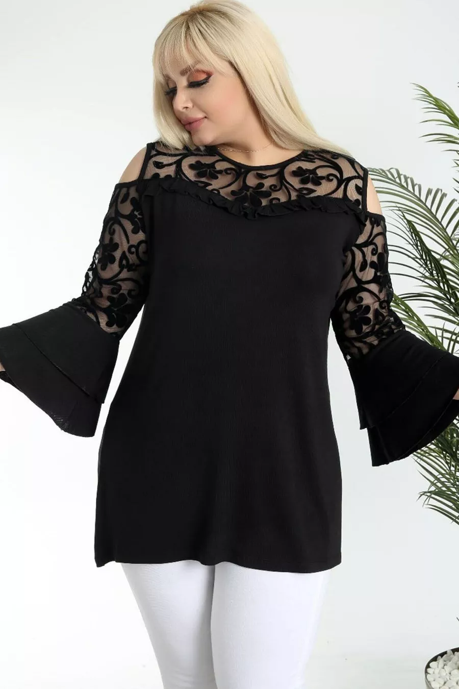 Pattern: Plain Fit: Plus Size Neck Type: Crew Neck Fabric Type: Knit Material: Viscose Sleeve Type: Long Sleeve Color: Black Occasion: Day / Night Length: Long Sleeve Length: Off-Shoulder Print/Embroidery Technique: Flock Additional Feature: Stretchy Persona: Sexy Pocket: No Pockets Weave Type: Pompon Viscose Belt/Strap Status: Without Belt Sustainability Detail: No Silhouette: Shirt Dress Material Composition: 95% Viscose, 5% Lycra Thickness: Medium Washing Instructions: T09 Collection: Plus Size Season: Spring / Autumn Origin: TR