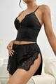 Sleeve Type: Spaghetti Strap Pattern: Plain Material: 100% Cotton Color: Black Neckline Type: Crew Neck Product Detail: With Slit Product Type: Plain Collection: Lingerie Sleeve Length: Spaghetti Strap Fabric Type: Woven Weave Type: Lace Persona: Sexy Fit: Regular Length: Mini Occasion: Lounge/Home Additional Feature: No Additional Feature Material Component: 100% Cotton Washing Instructions: Wash at 30 Degrees Silhouette: Basic Package Content: 2-piece Made In: TR
