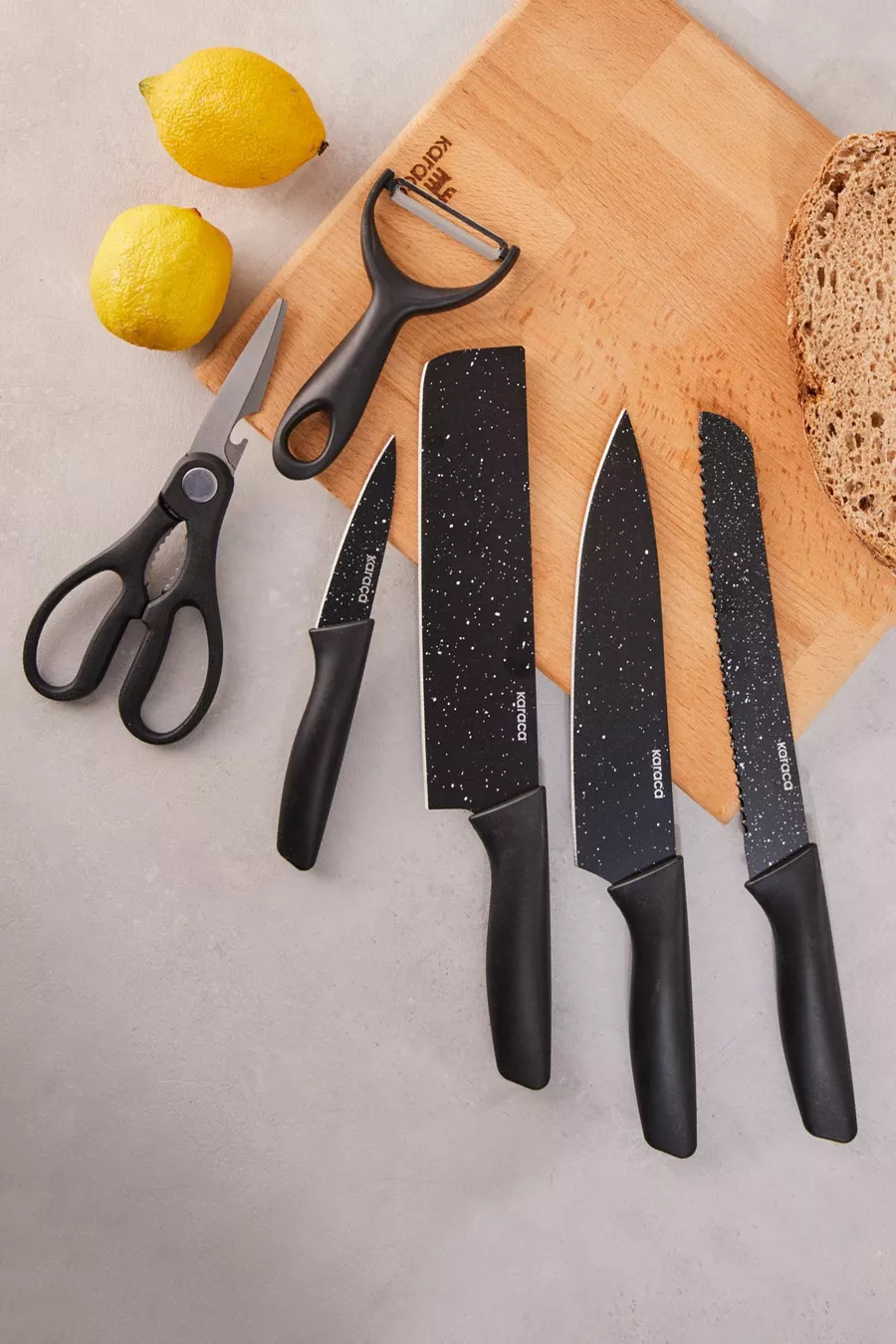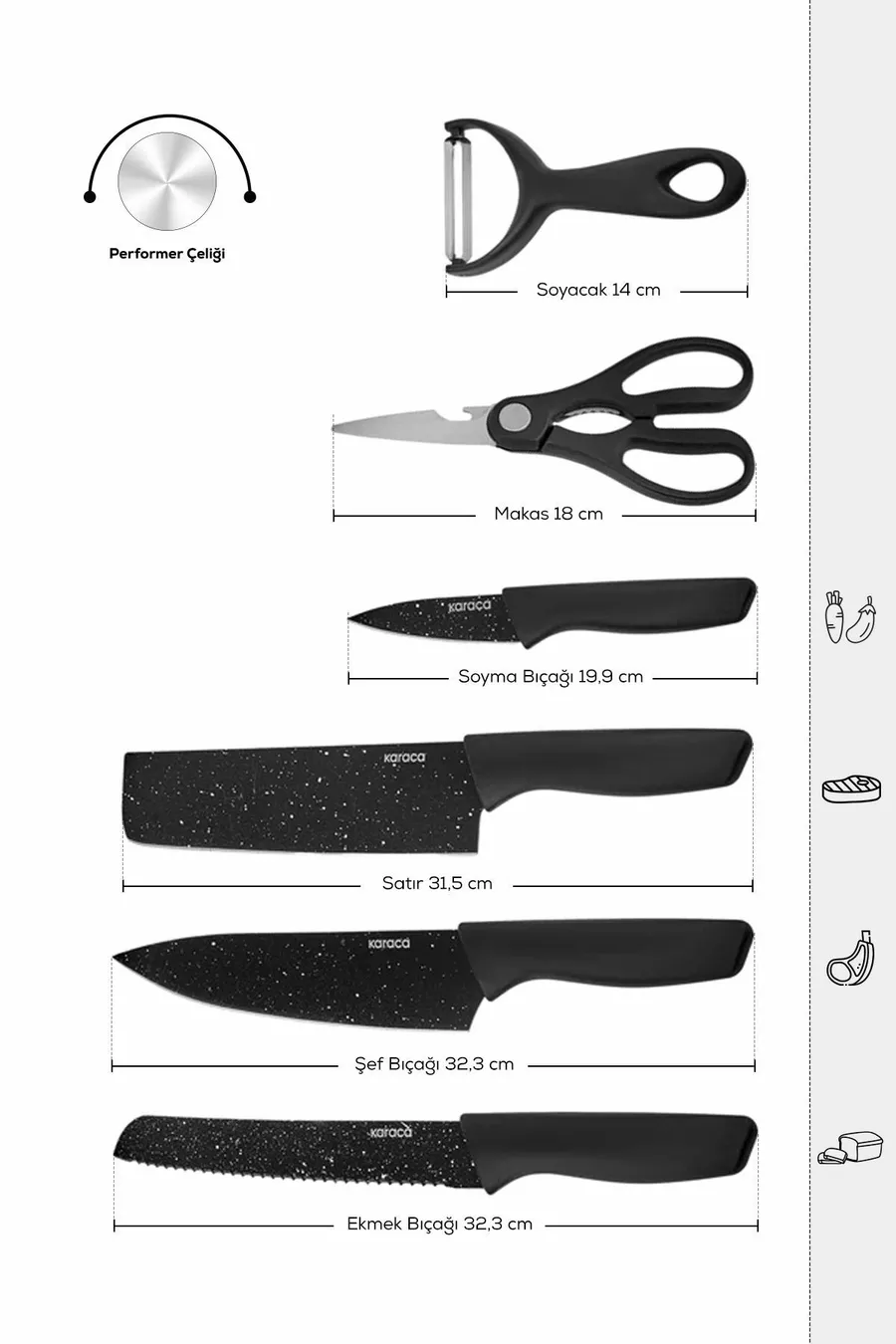 Black Stone 6-Piece Knife Set with Cleaver, Scissors, and Peeler