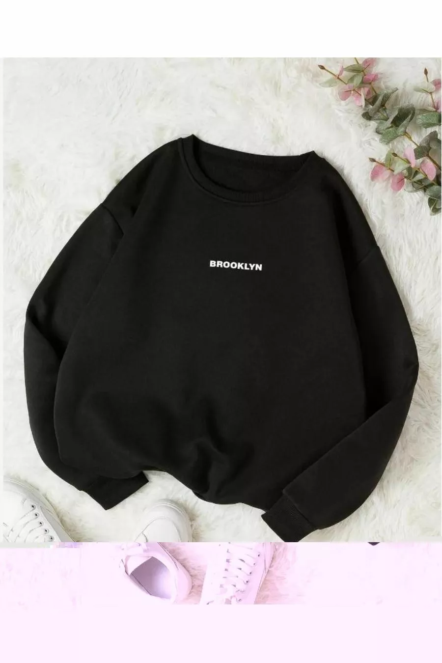 Black Sweatshirt Brooklyn Print Oversized