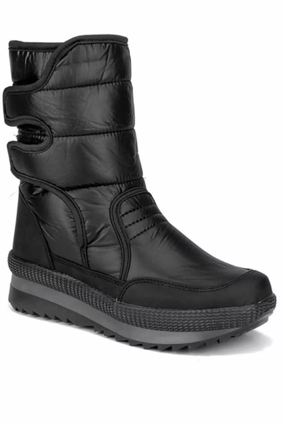 Black Unisex Thermal Fur Non-Slip Sole Women - Men - Kids Snow Boots