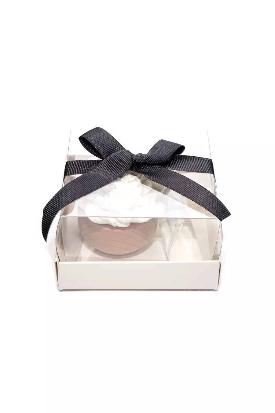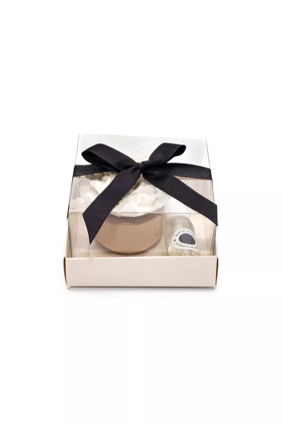 Black Vanilla Ceramic Scent Stone Gift Set with Wooden Base