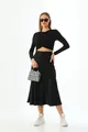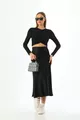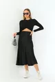 Black Viscose Satin Midi Skirt