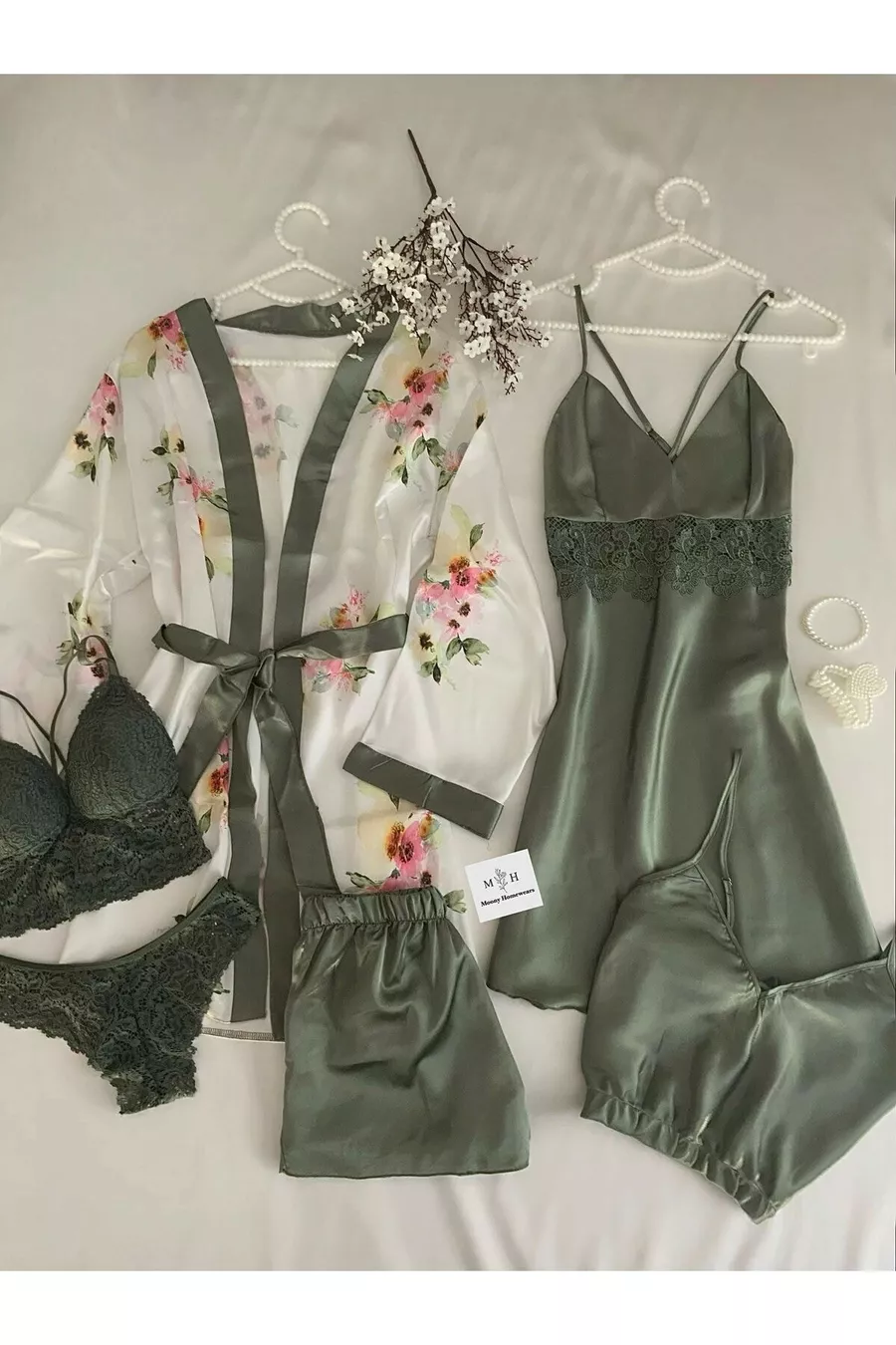 Boxed 6-Piece Satin Certsom Nightgown Pajama Lingerie Bridal Set