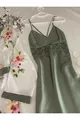 Sustainability Detail: No Sleeve Type: Strappy Pattern: Floral Neckline Type: V Neck Pant Length: Long Color: Green Material: Satin Product Type: Plain Collection: Homewear Sleeve Length: Strappy Technique: Piece Fit: Regular Fabric Type: Woven Waist: Regular Waist Weave Type: Satin Silhouette: Regular Persona: Sexy Occasion: Homewear Additional Feature: Satin Washing Instructions: T09 Pant Style: Wide Leg Package Contents: Set of 6 Length: Mini