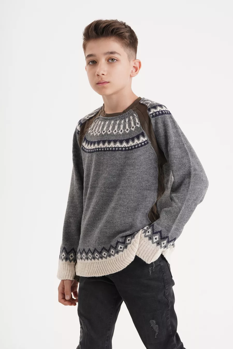 Pattern: Patterned Fit: Regular Neck Type: Crew Neck Fabric Type: Knit Material: Cotton - Wool Color: Gray Sleeve Type: Long Sleeve Pocket: No Pocket Product Type: Plain Sleeve Length: Long Thickness: Medium Silhouette: Regular Occasion: Casual/Daily Length: Standard Print/Embroidery Technique: Non-printed Weaving Type: Knit Sustainability Detail: No Number of Pieces: 1 Belt/Waistband Status: Without Belt Washing Instructions: Type 1 Box Status: No Box
