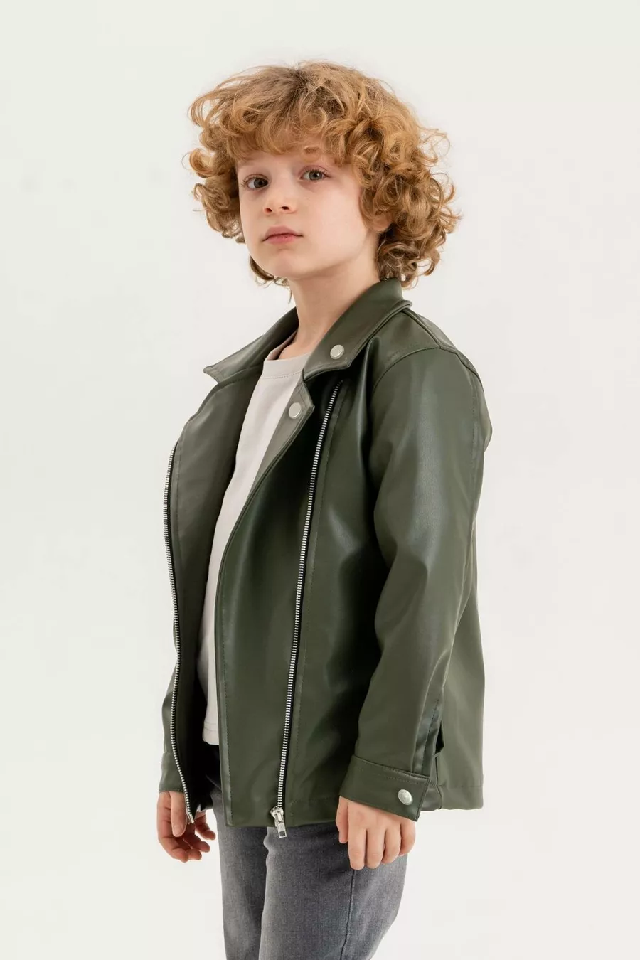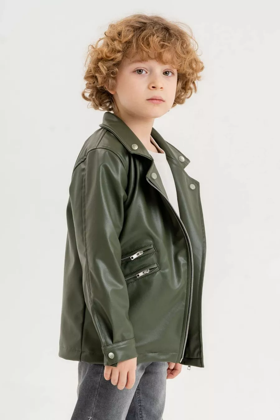 Sleeve Type: Long Sleeve Pattern: Solid Fit: Regular Collar Type: Blazer Collar Material: Polyester Blend Fabric Type: Faux Leather Color: Green Closure Type: Zipper Product Detail: Faux Leather Pocket: Double Pocket Sleeve Length: Long Collection: Young Thickness: Medium Lining: Lined Length: Regular Silhouette: Basic Occasion: Casual/Daily Extra Feature: Windproof Weave Type: Faux Leather Sustainability Detail: No Persona: Cool & Comfort Belt/Strap: Without Belt Product Type: Solid Care Instructions: Type 4 Box Condition: No box