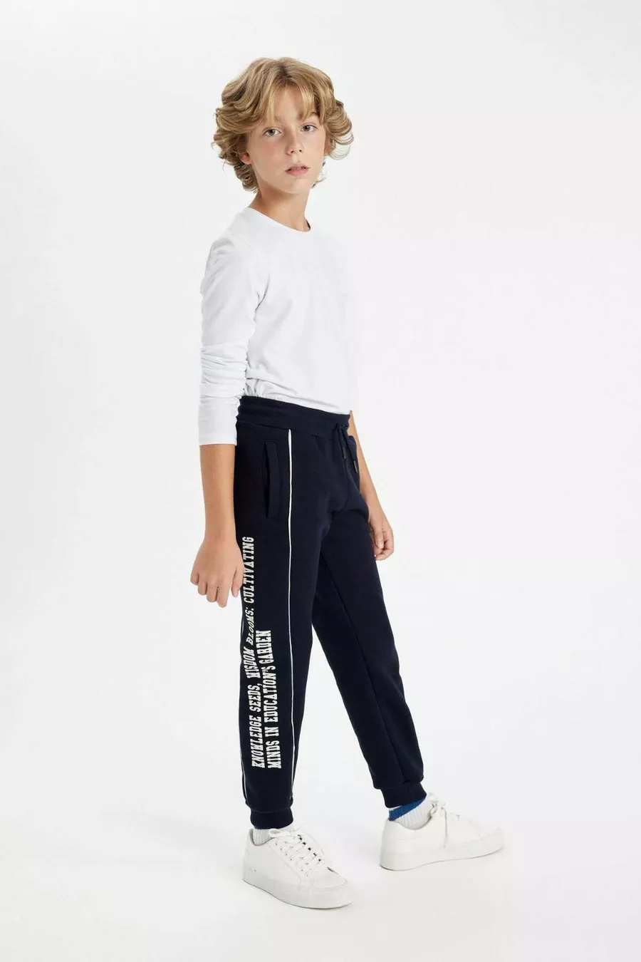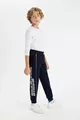 Boys' Navy Printed School Jogger Sweatpants with Elastic Waist and Ankles, Pockets AU
