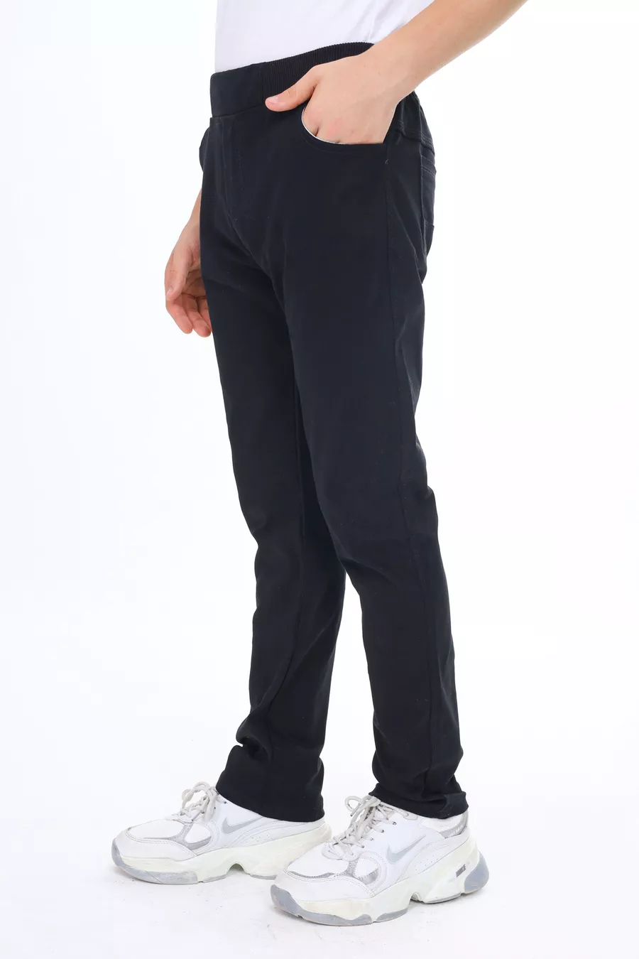 Material: Cotton Fabric Type: Woven Leg Type: Slim Leg Waist: Regular Waist Pattern: Solid Color: Black Pocket: Double Pocket Product Detail: Zipper Collection: Basic Thickness: Medium Lining: Unlined Length: Regular Silhouette: Regular Occasion: Casual Fit: Classic Additional Feature: Elastic Waist Weave Type: Ribbed Knit Persona: Cool & Comfort Print/Embroidery Technique: No Print Belt/Strap: Without Belt Sustainability Detail: No Material Composition: 100% Cotton Washing Instructions: Machine wash at 30 degrees Season: All Seasons Origin: TR Package Content: Single