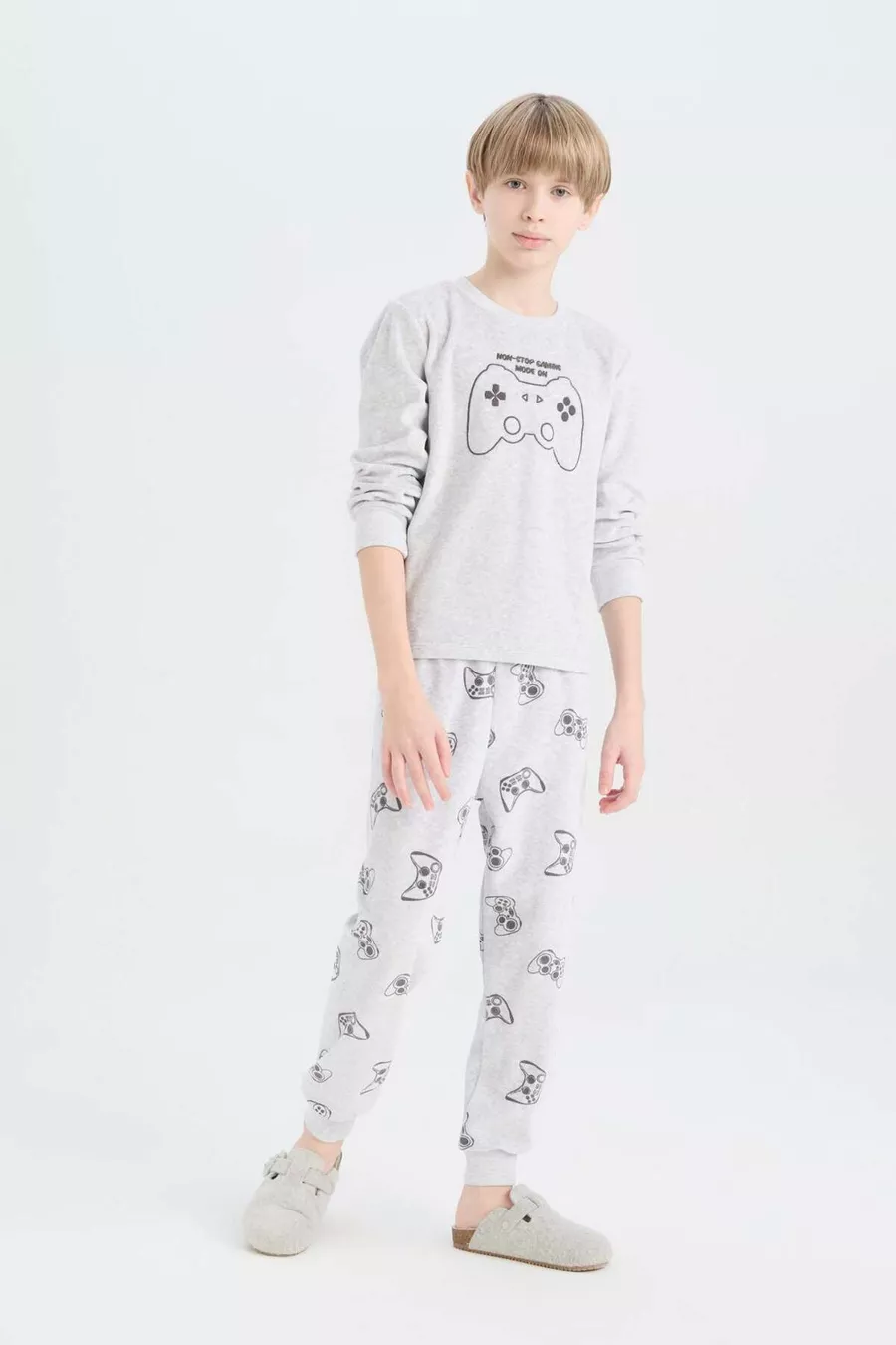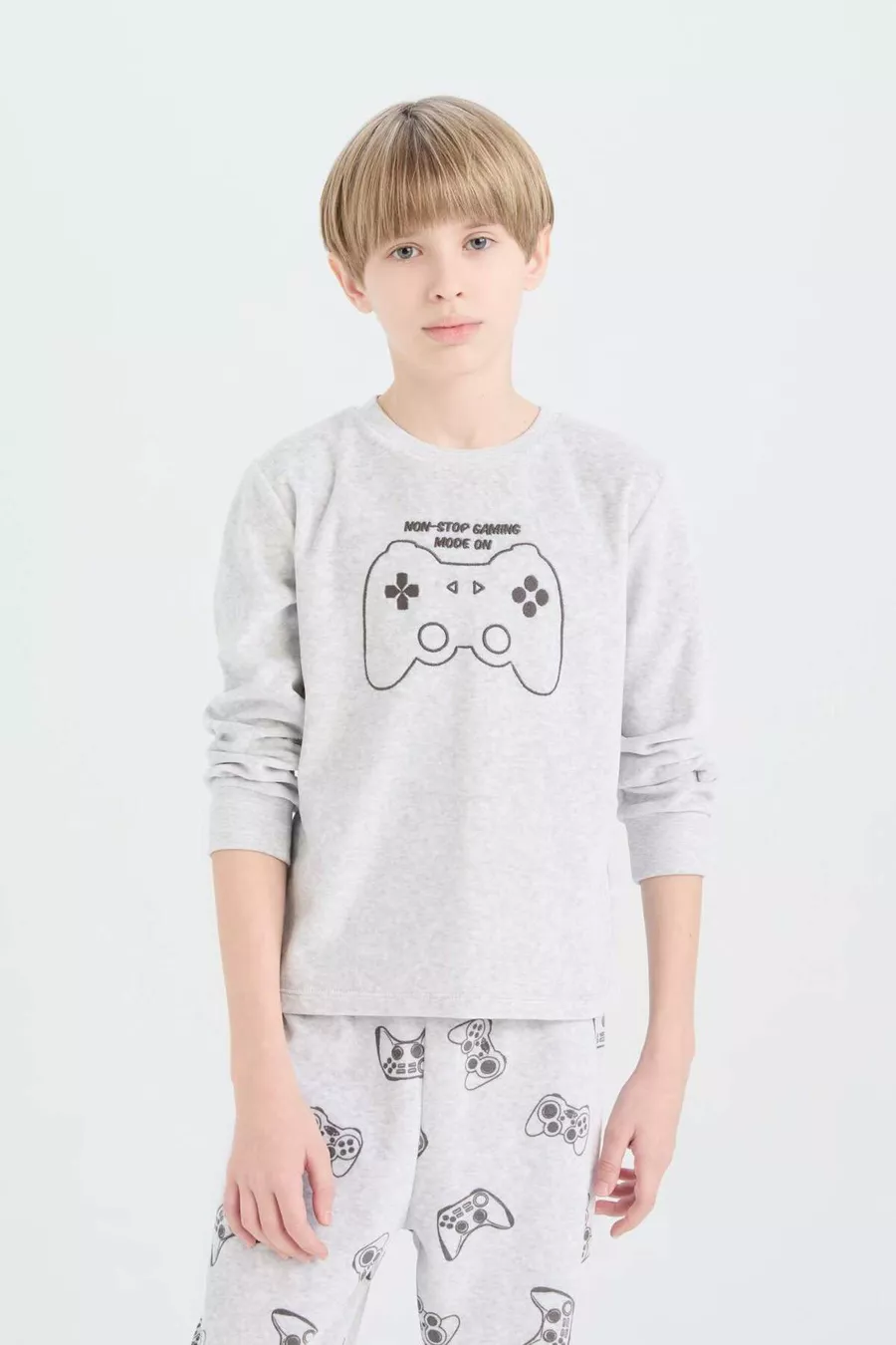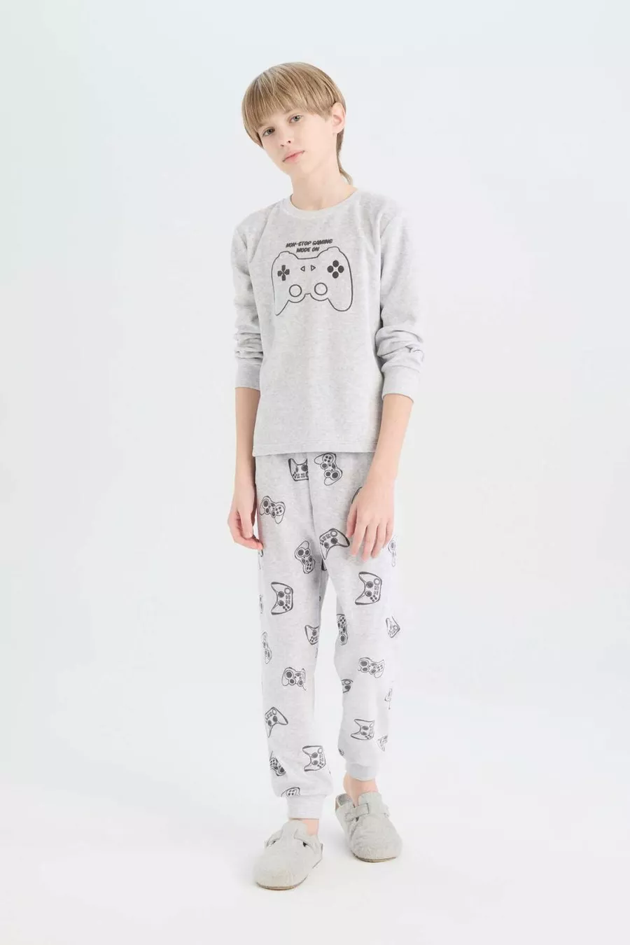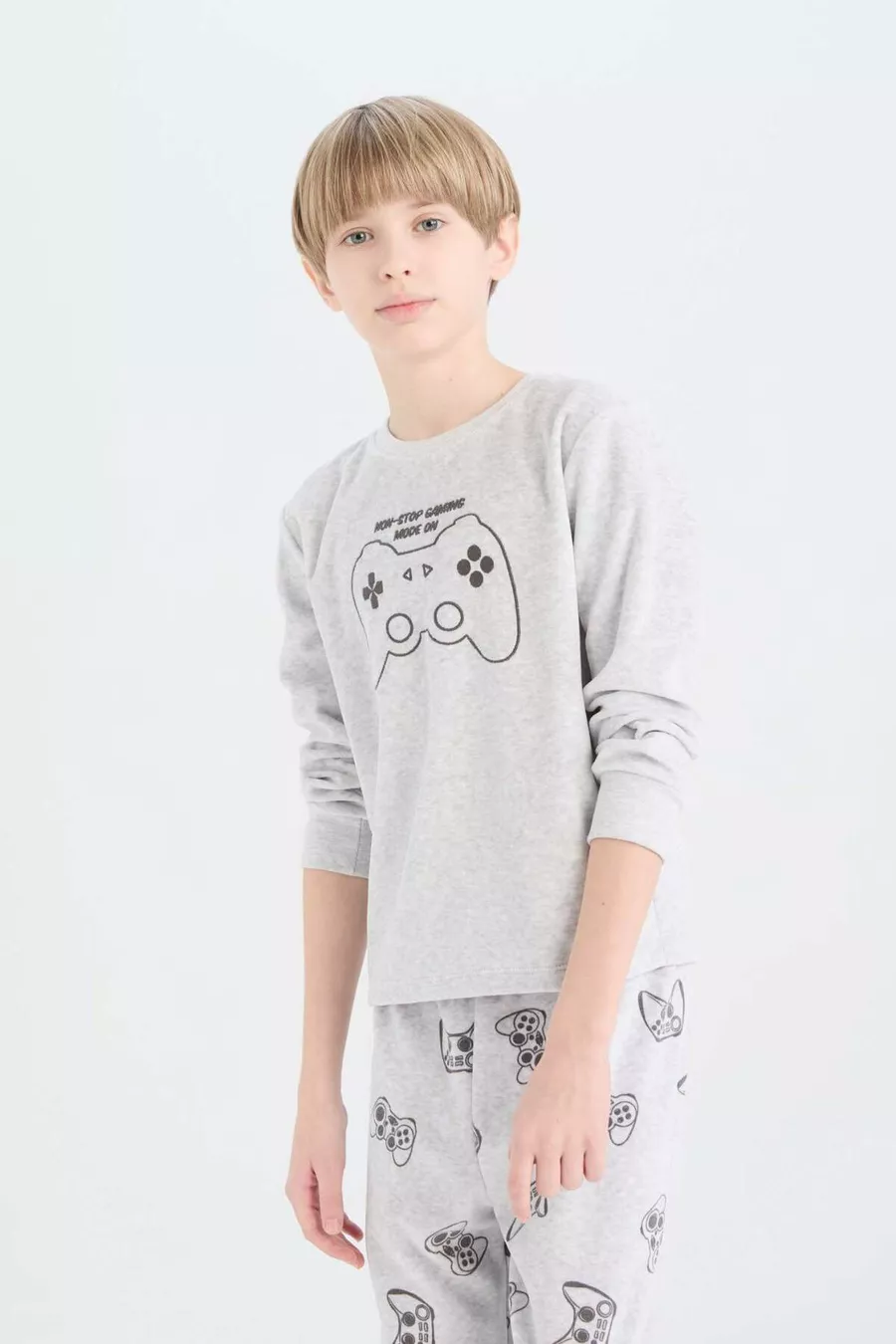 Boys' Velvet Pajama Set Printed Long Sleeve Top Long Pants CW