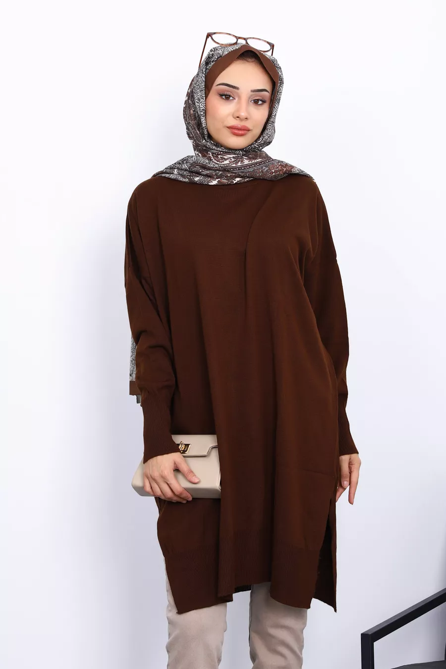Material: Acrylic Blend Fabric Type: Knit Sleeve Type: Long Sleeve Pattern: Striped Fit: Regular Neck Type: Crew Neck Color: Brown Product Type: Plain Collection: Modest Wear Product Detail: Zipper Pocket: No Pocket Sleeve Length: Long Material Composition: 98% Acrylic, 2% Polyester Occasion: Casual/Daily Weave Type: 2-Ply Length: Standard Additional Feature: No Additional Feature Persona: Cool & Comfort Washing Instructions: Type 1 Silhouette: Tunic Sustainability Detail: No Thickness: Medium Season: All Seasons Origin: TR Box Condition: No Box Closure Type: Single Closure