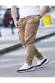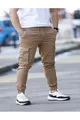 brown cargo pants with elastic waistband and cuffs