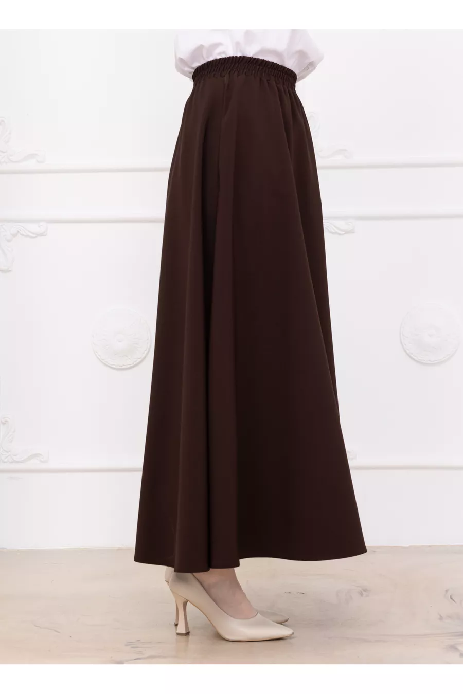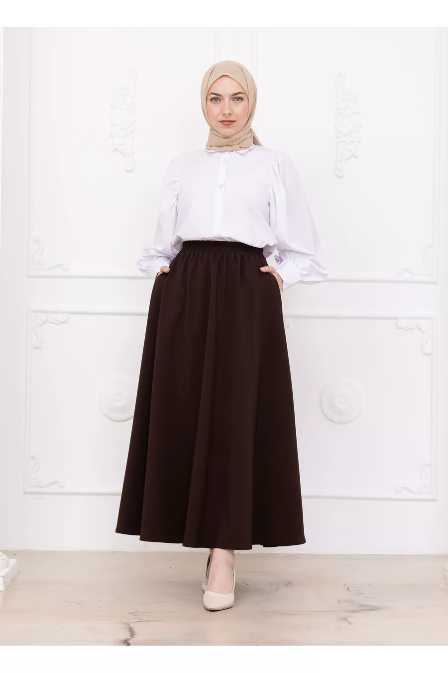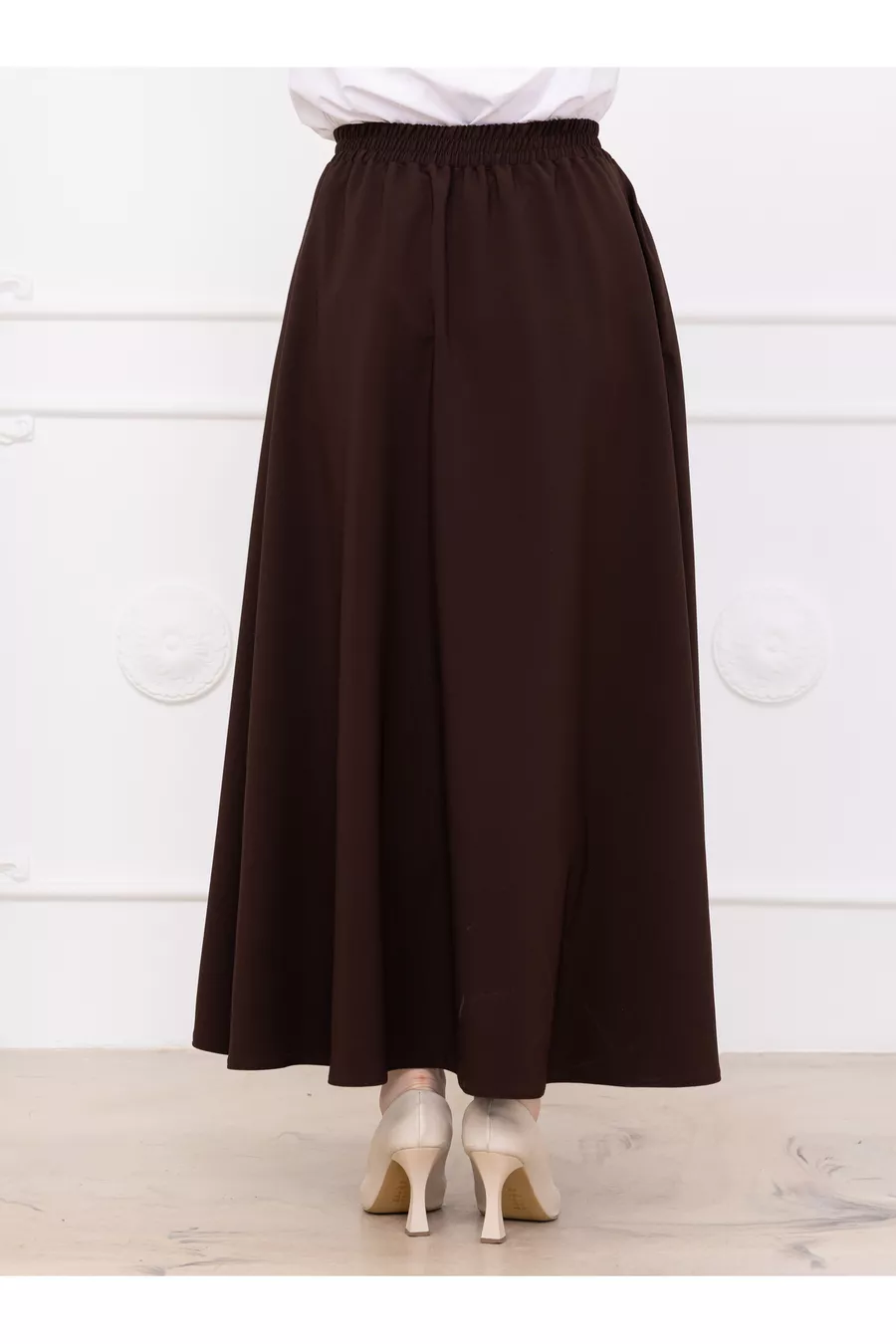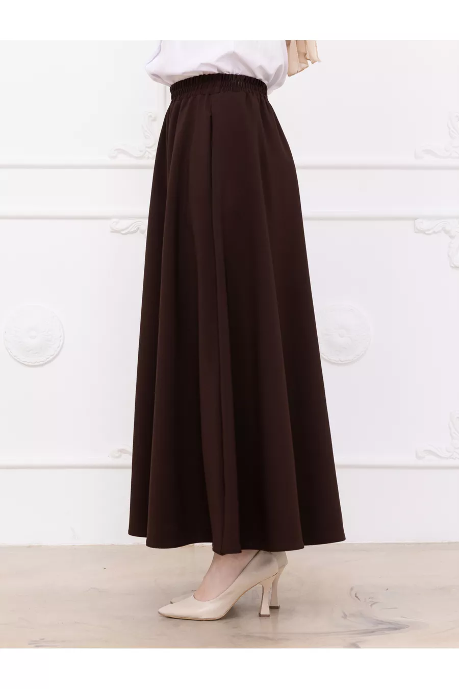 Silhouette: Flared Fit: Flared Thickness: Medium Pattern: Solid Fabric Type: Woven Material: Fabric Color: Brown Product Detail: With Pocket Detail Collection: Modest Wear Waist: Elastic Pocket: Hidden Additional Feature: Elastic Waist Weave Type: Double Face Length: Long Belt/Sash: Without Belt Closure Type: Elastic Sustainability Detail: Yes Lining: Unlined Persona: Cool & Comfort Occasion: Daily Material Composition: Cotton polyester Washing Instructions: 30 degrees Season: All Seasons Origin: TR Box Condition: No Box