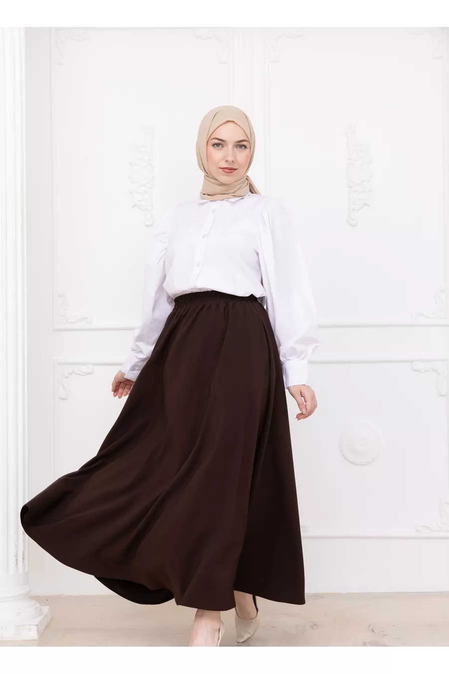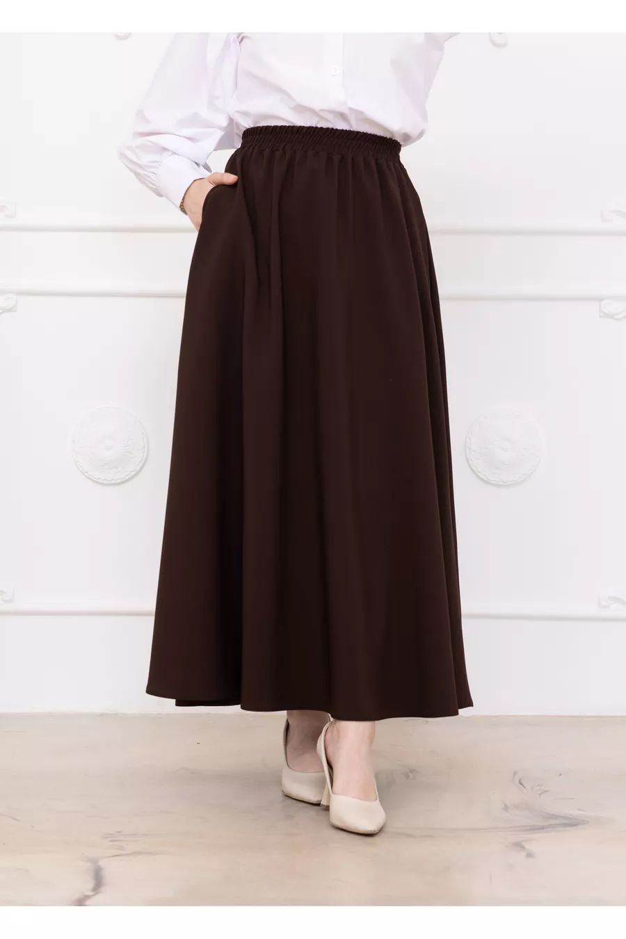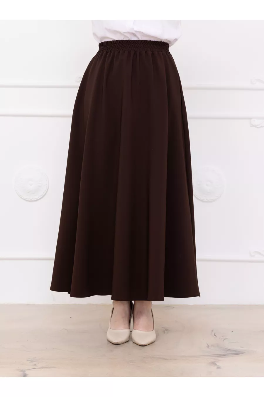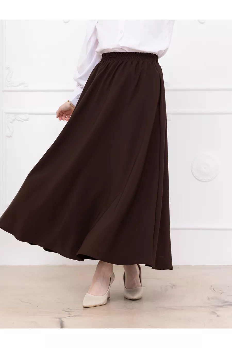 Silhouette: Flared Fit: Flared Thickness: Medium Pattern: Solid Fabric Type: Woven Material: Fabric Color: Brown Product Detail: With Pocket Detail Collection: Modest Wear Waist: Elastic Pocket: Hidden Additional Feature: Elastic Waist Weave Type: Double Face Length: Long Belt/Sash: Without Belt Closure Type: Elastic Sustainability Detail: Yes Lining: Unlined Persona: Cool & Comfort Occasion: Daily Material Composition: Cotton polyester Washing Instructions: 30 degrees Season: All Seasons Origin: TR Box Condition: No Box