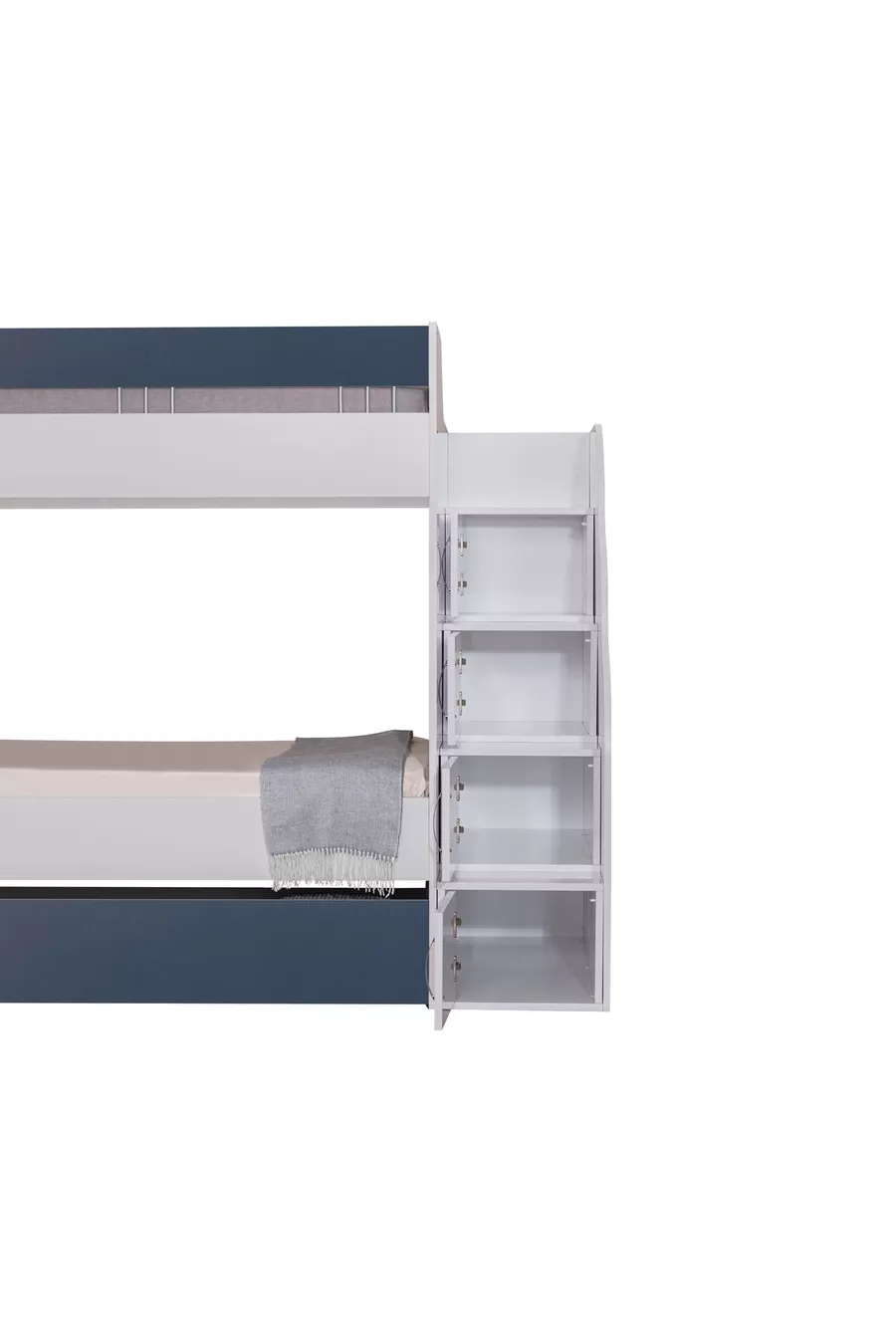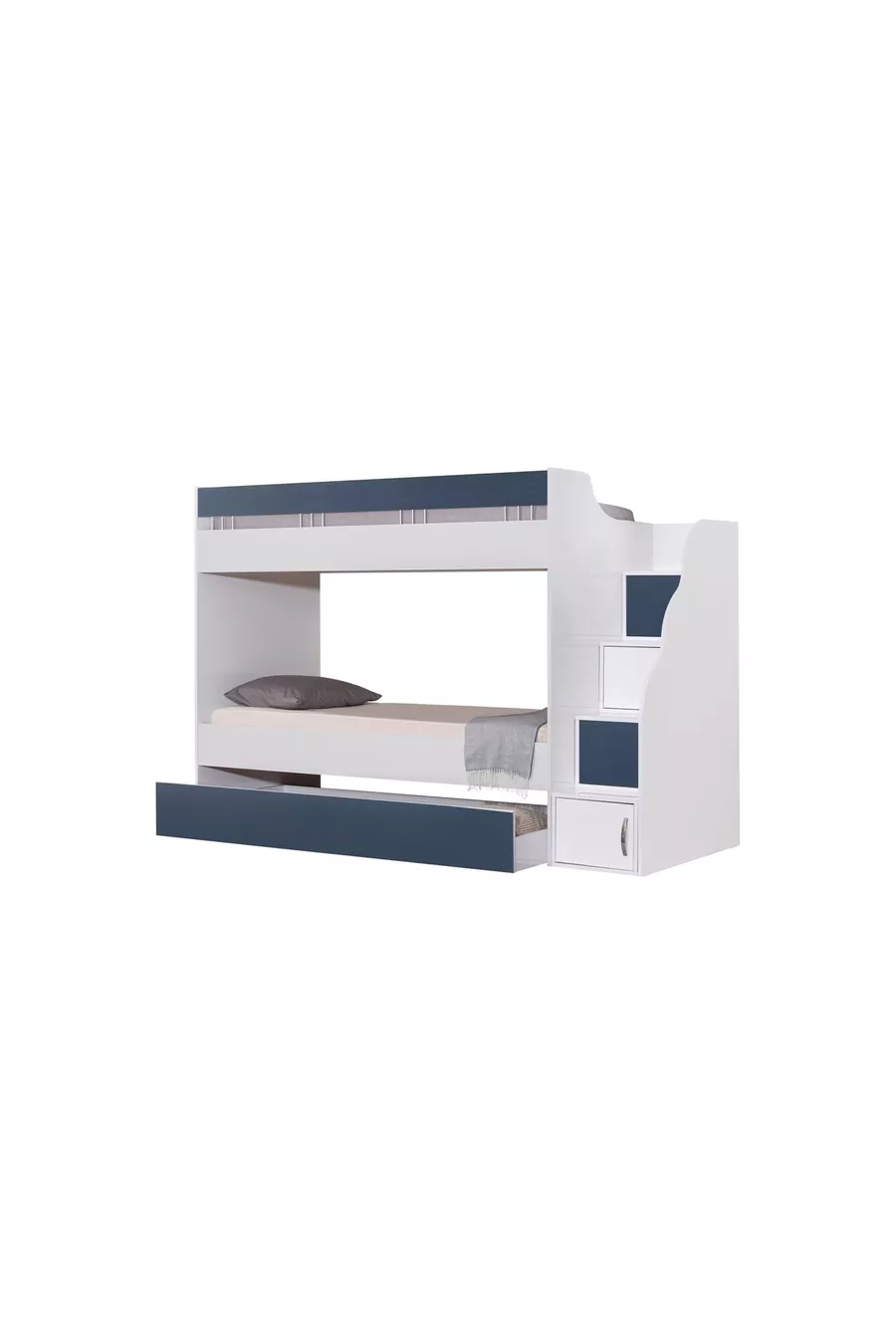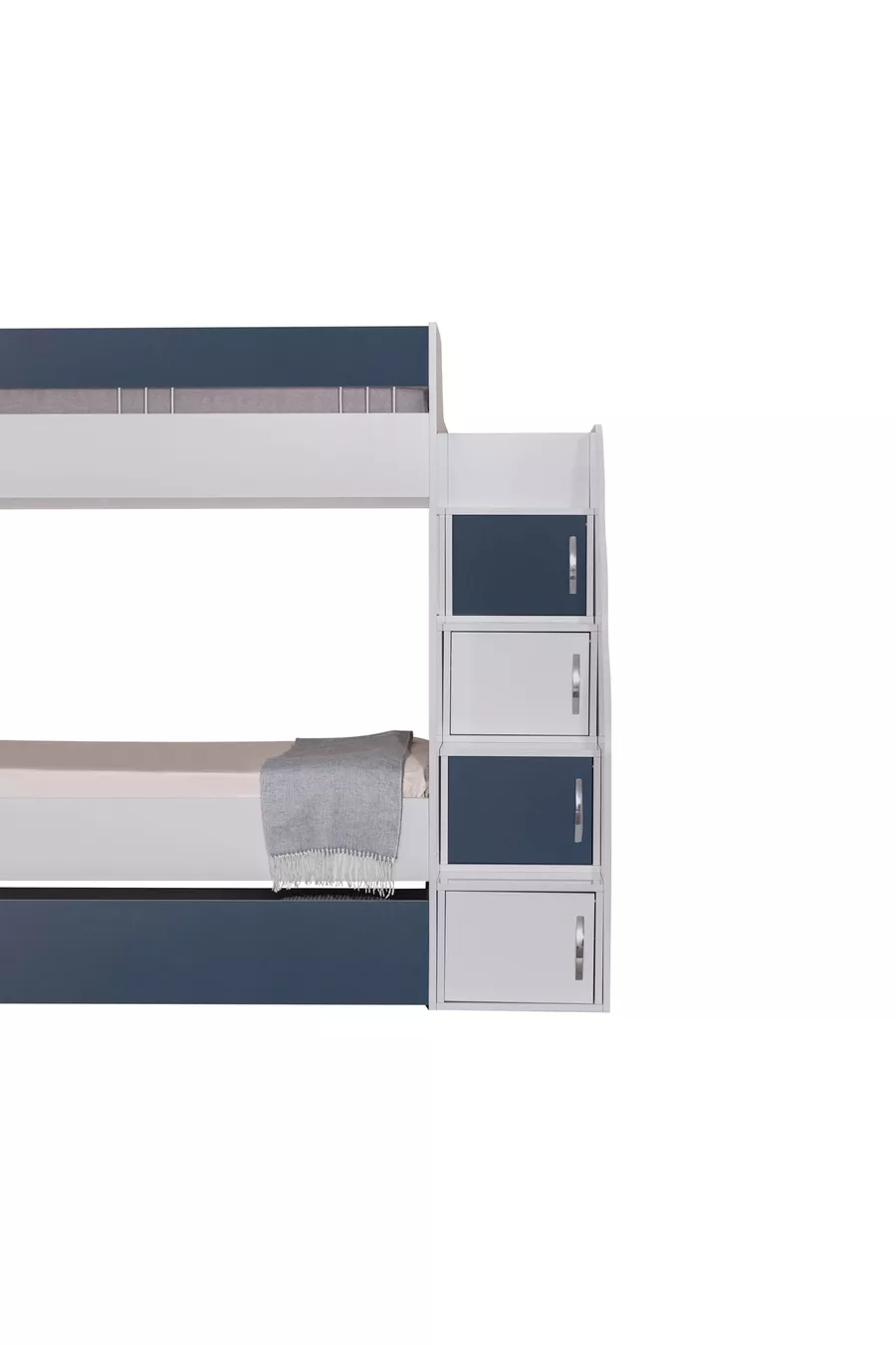 BUNK BED, WHITE-BLUE BUNK BED WITH SMALL BED