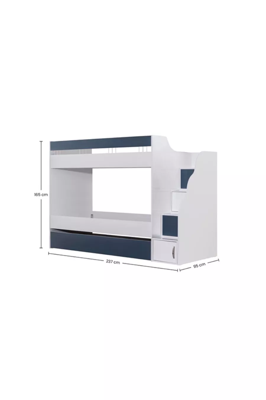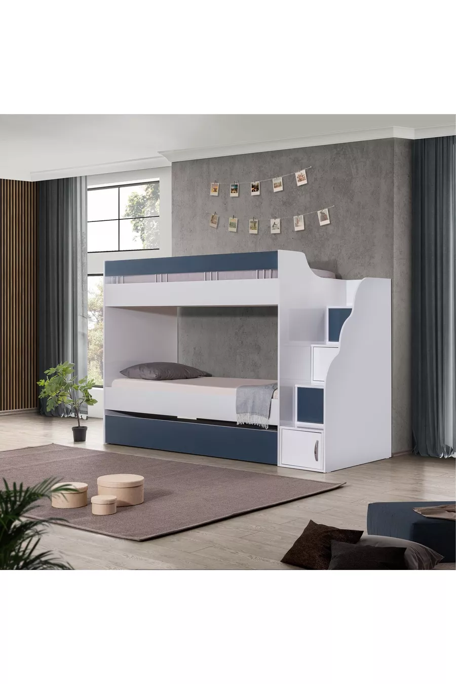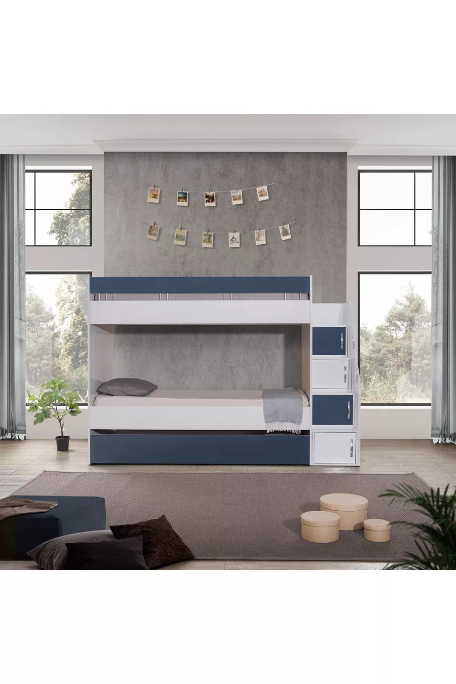 BUNK BED, WHITE-BLUE BUNK BED WITH SMALL BED