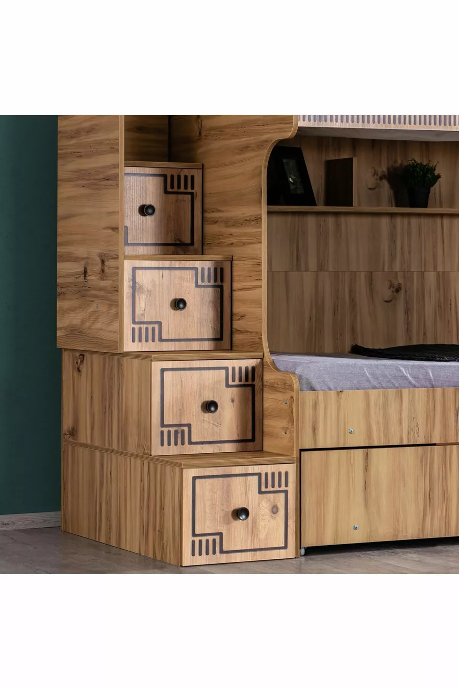 Bunk Bed, Natural Bunk Bed with 3 Comfort Mattresses