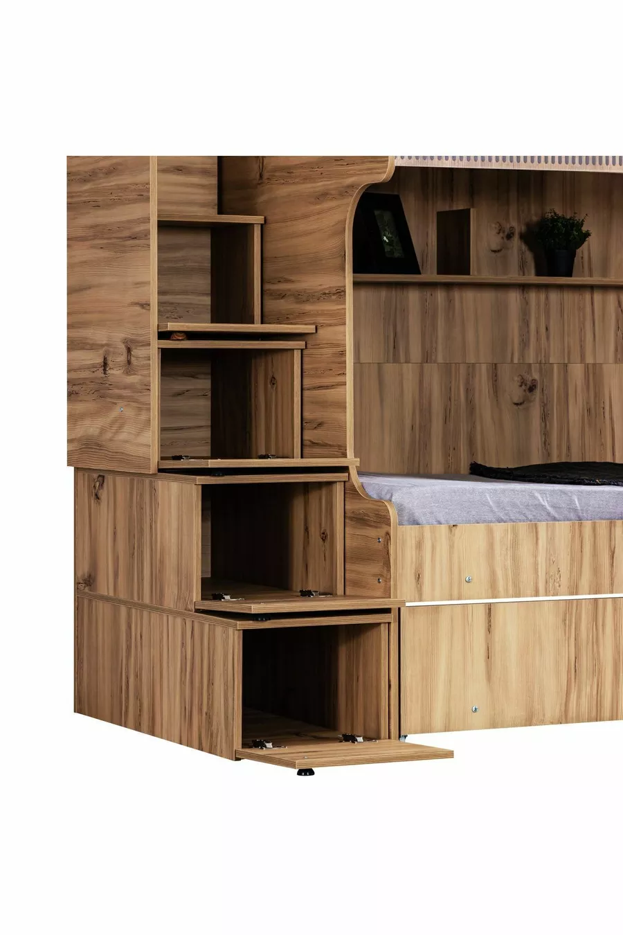 Color: Brown Material: Wood Size: Single Dimensions: 90 x 190 Warranty: 2 Years Style: Modern Theme / Style: Modern Bed with Storage: Yes