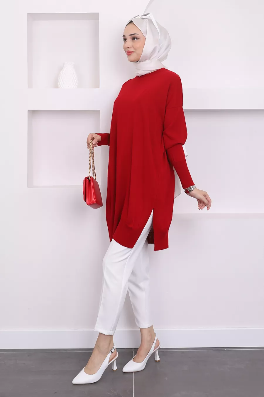 Material: Polyester Blend Fabric Type: Knit Sleeve Type: Long Sleeve Pattern: Plain Fit: Regular Neck Type: Crew Neck Color: Burgundy Product Type: Plain Collection: Modest Wear Product Detail: Woven Detail Pocket: No Pockets Sleeve Length: Long Material Composition: 100% Polyamide Occasion: Casual/Daily Weave Type: Knit-like Length: Standard Additional Feature: No Additional Feature Persona: Fashion Forward Washing Instructions: Type 1 Silhouette: Puffer Sustainability Detail: No Thickness: Medium Season: All Seasons Origin: TR Box Condition: No Box Closure Type: Single Closure