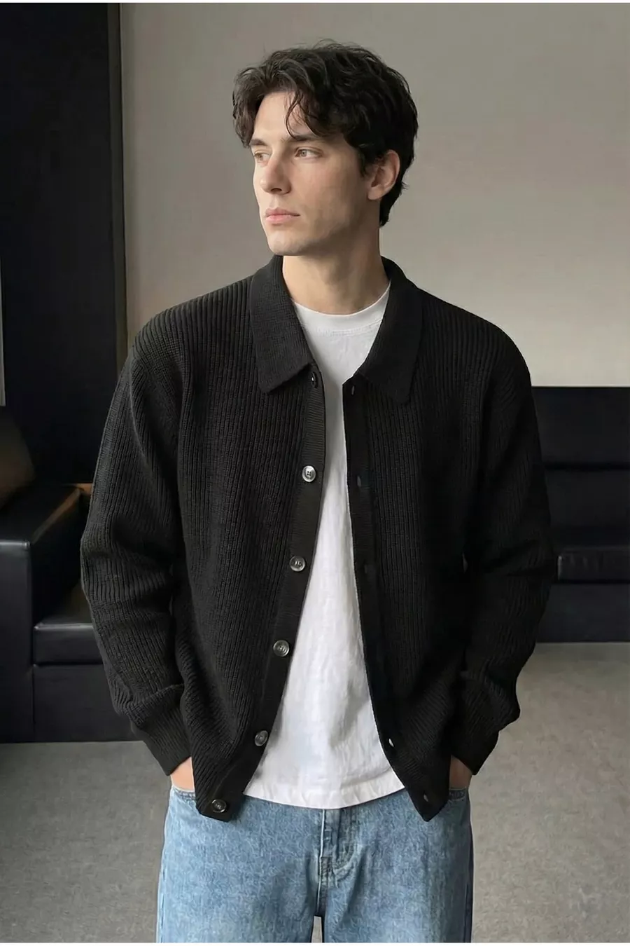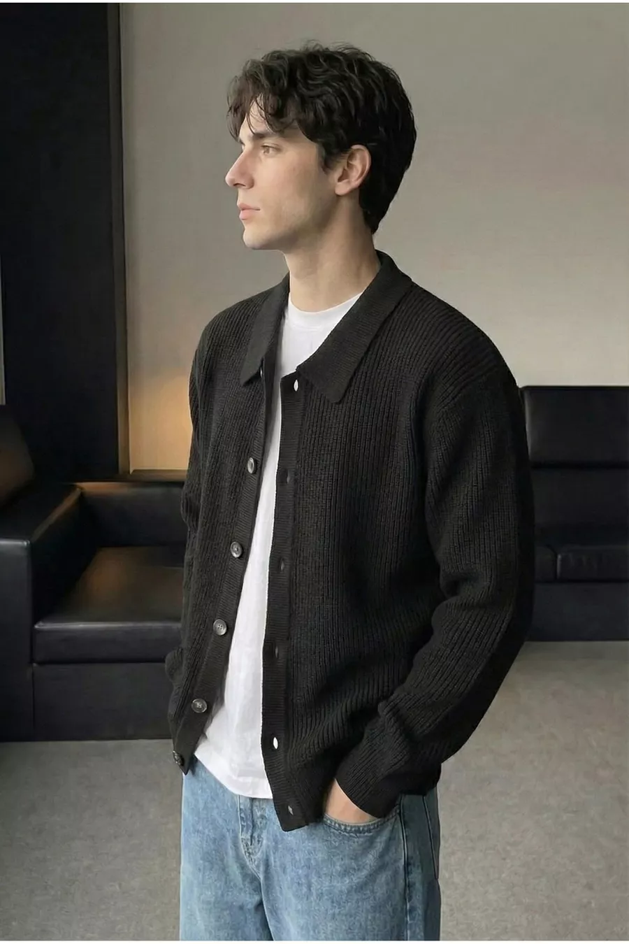 Material: Acrylic Sleeve Type: Long Sleeve Pattern: Plain Fit: Regular Fabric Type: Knit Color: Black Collar Type: Shirt Collar Product Detail: Buttoned Product Type: Plain Pocket: No Pocket Sleeve Length: Long Collection: Basic Thickness: Very Thick Length: Regular Silhouette: Basic Occasion: Casual Additional Feature: Straight Cut Print/Embroidery Technique: None Closure Type: Buttoned Number of Pieces: 1 Persona: Cool & Comfort Sustainability Detail: No Weave Type: Fleece Belt/Waistband: No Belt Material Composition: 70% Acrylic, 30% Cotton Washing Instructions: Type 1 Season: All Seasons Origin: TR Box Status: No Box