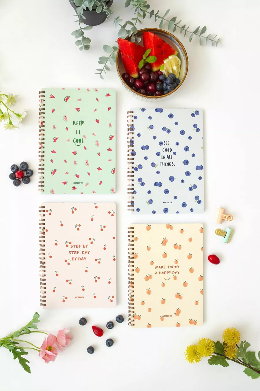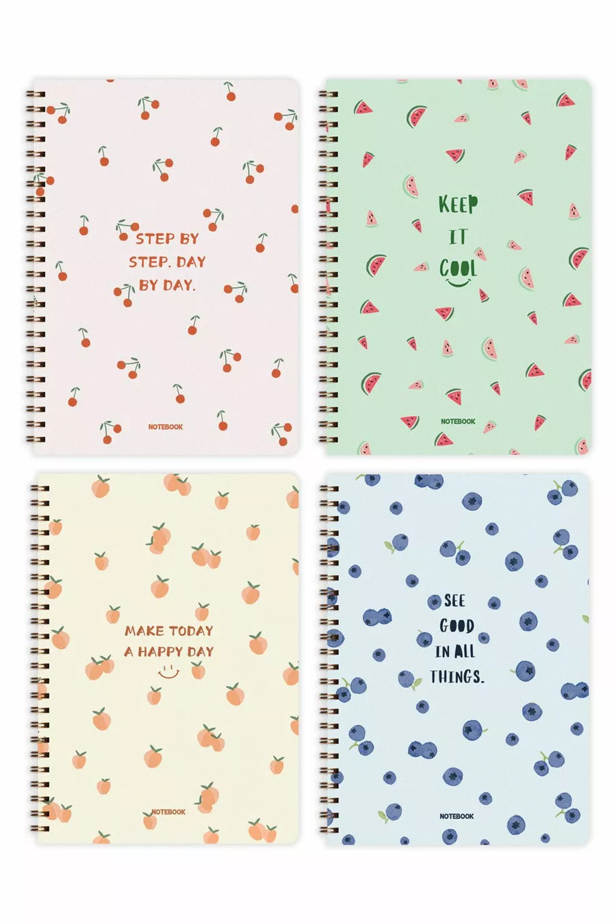 Spiral School Notebook Sheets 4-Pack - Grid Fruits