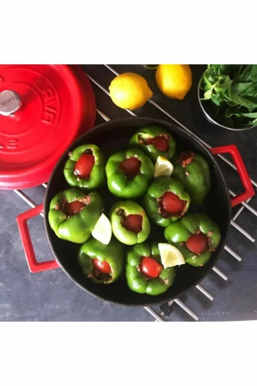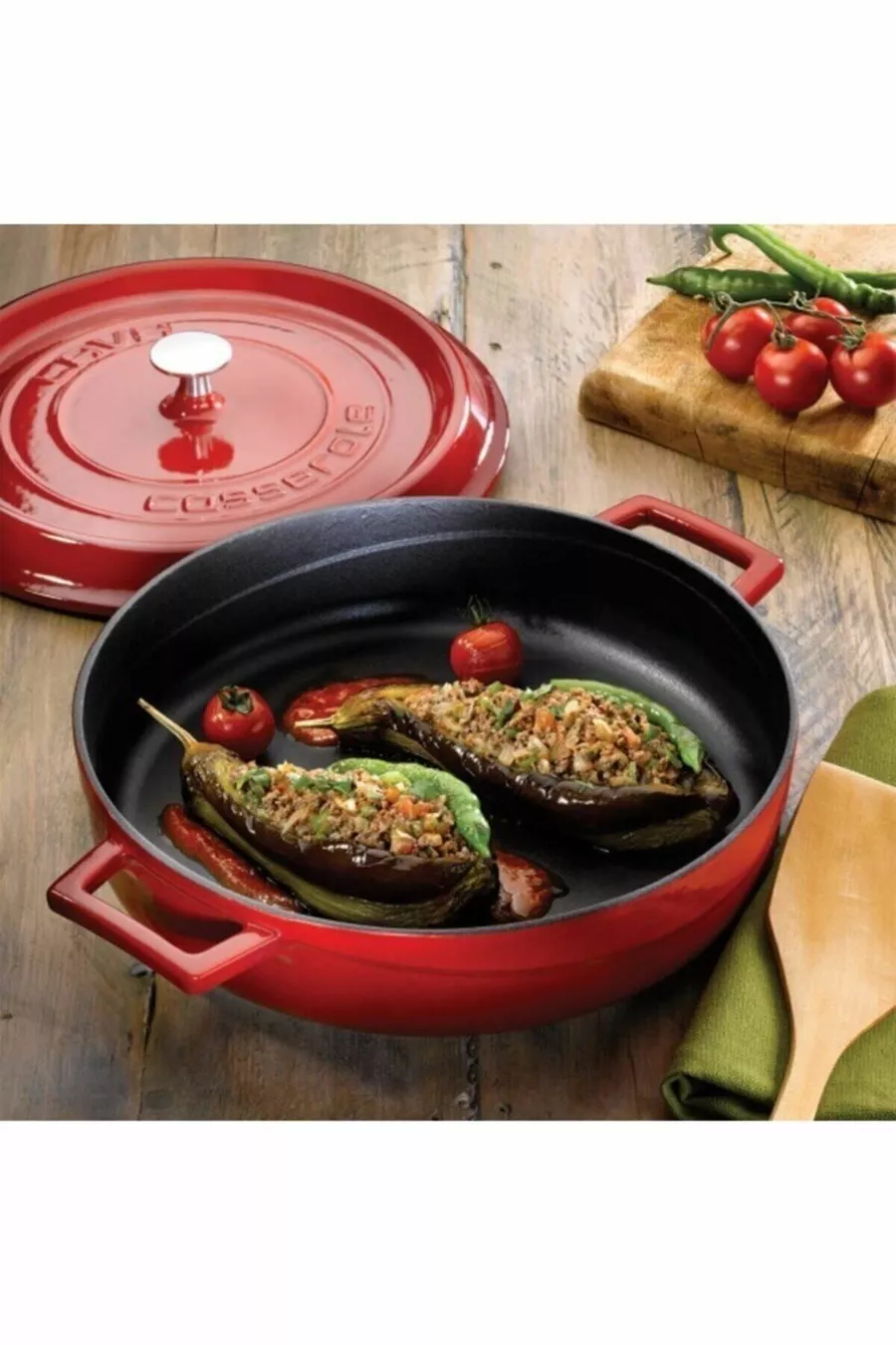Color: Red Size/Dimension: 28 cm Volume: 3.1 L Feature: Not specified Exterior Material: Cast Interior Material: Cast Number of Pieces: 2 Origin: TR Care Instructions (Food Contact): Dishwasher safe. Food Contact Symbol: Yes Material: Cast