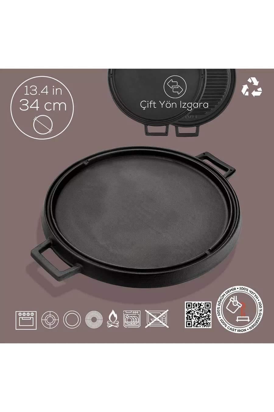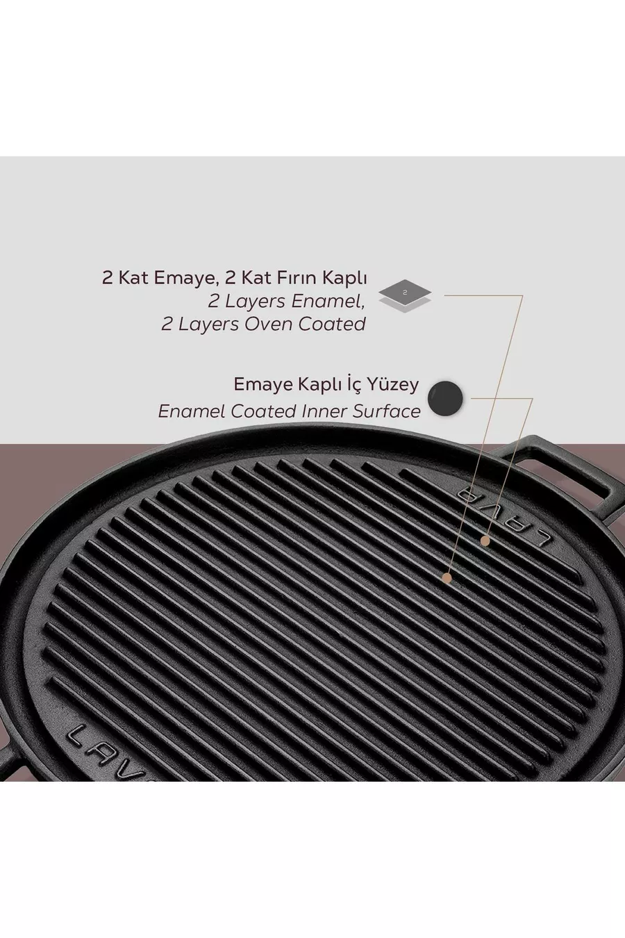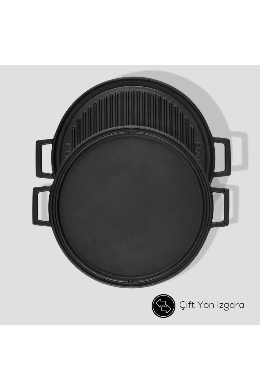 Cast Round Double-Sided Grill Pan Cast Iron One-Piece Double Handle Diameter (Ø)cm.