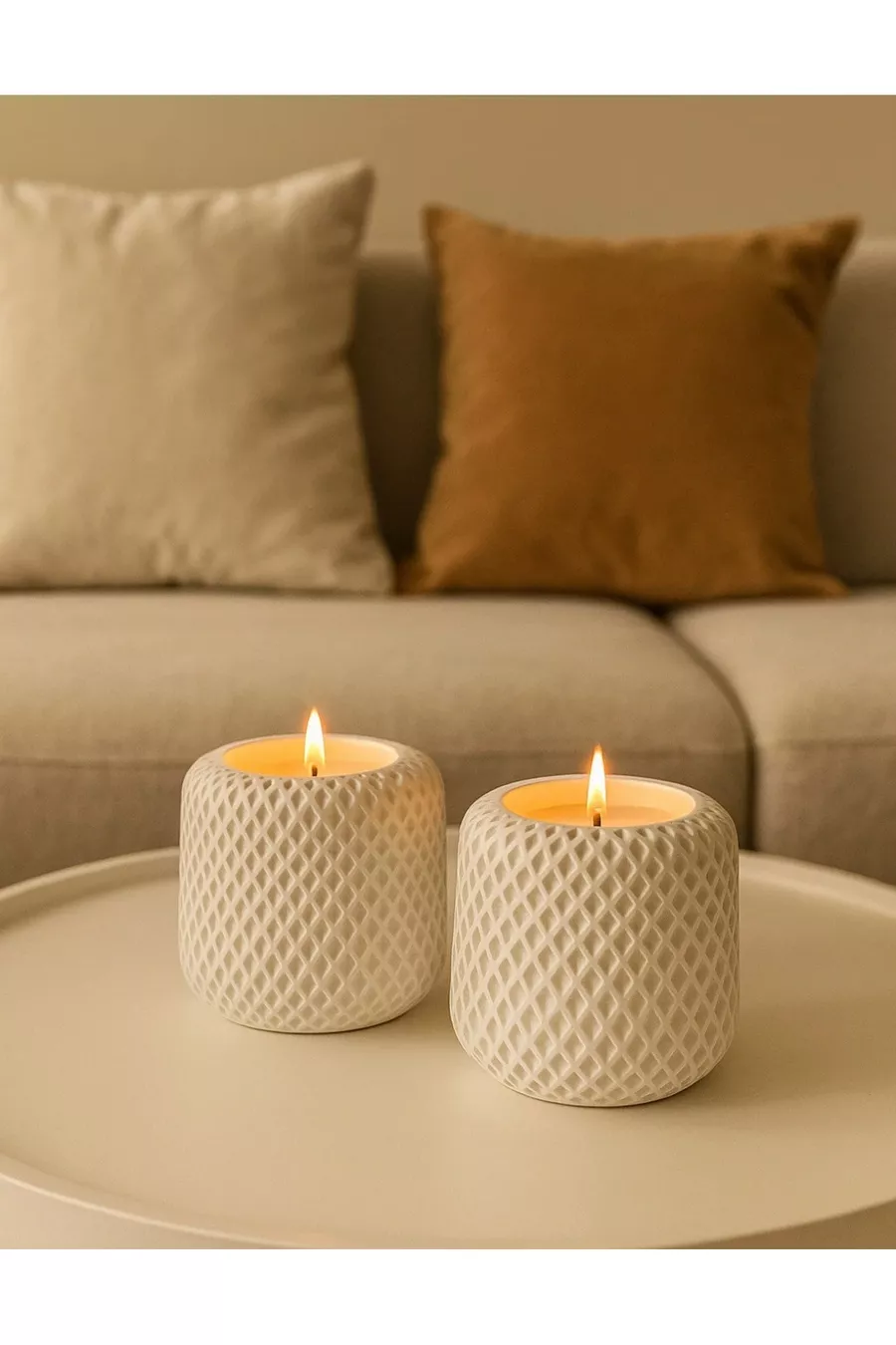 Ceramic Scented Candle – Handmade Decorative Candle, Vanilla Scented, Living Room Decor