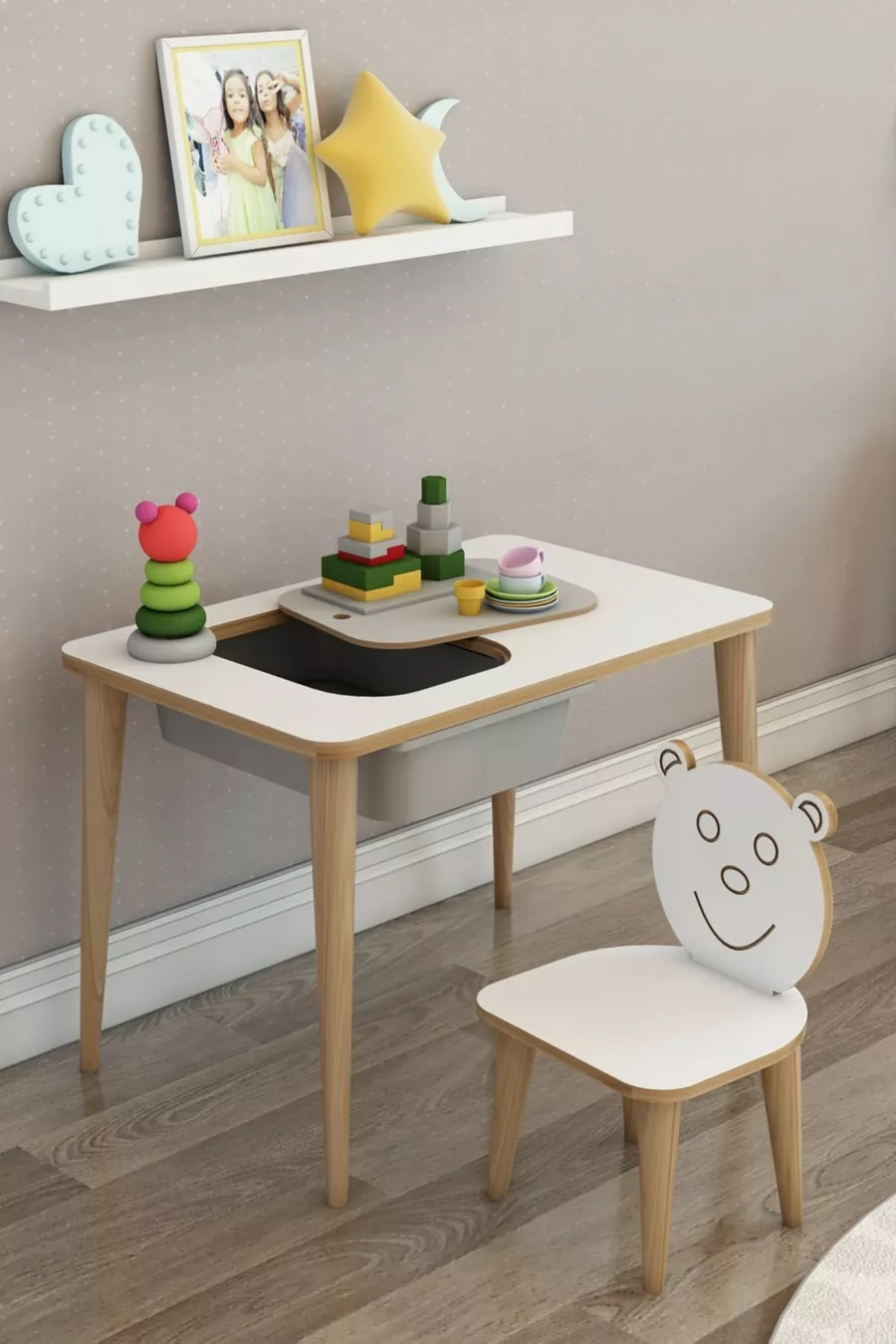 Age: 3+ Years Material: MDF Color: Navy Blue Number of Chairs: 1 Style: Scandinavian Theme / Style: Scandinavian Feature: Long