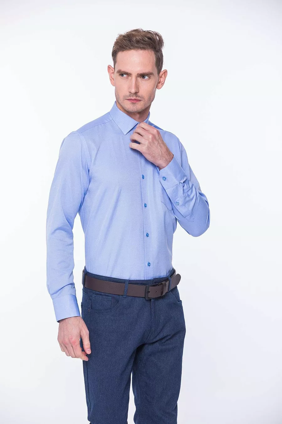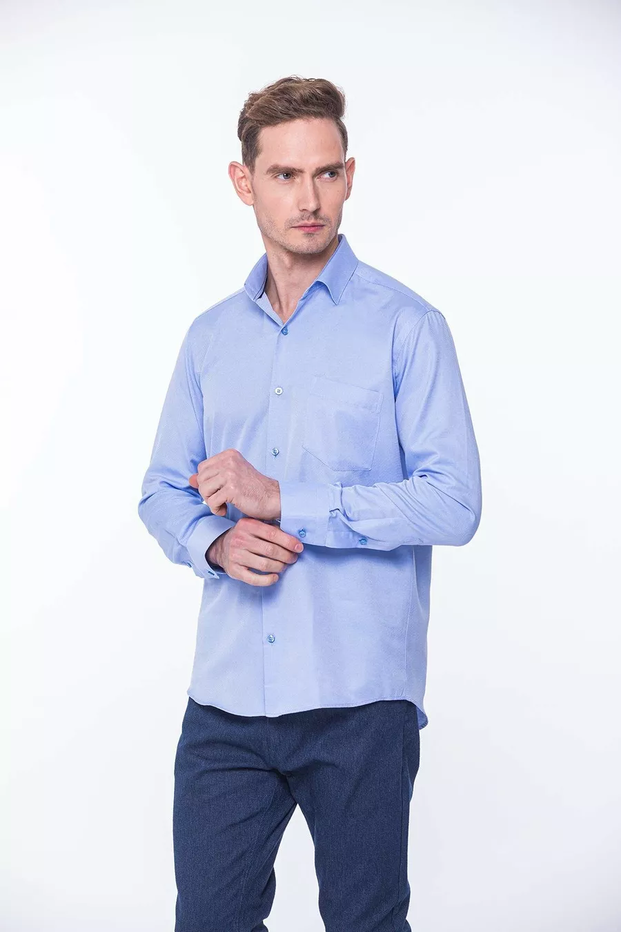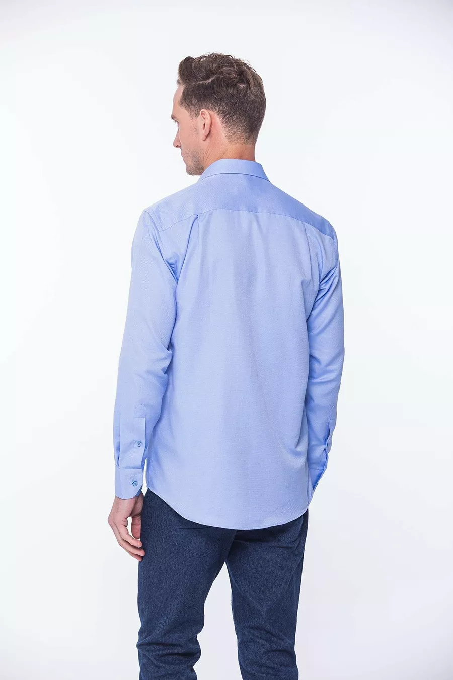 Classic Long Sleeve Oxford Men's Shirt with Gift Box, Easy to Iron - Blue