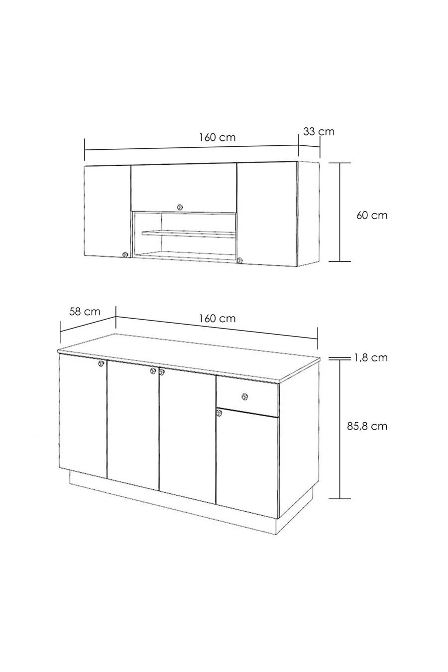Material: Wood Color: White Warranty Period: 2 Years Lower Module Height: 87 cm Lower Module Width: 60 cm Upper Module Height: 60 cm Upper Module Width: 160 cm Style: Scandinavian Theme / Style: Scandinavian Origin: TR Feature: With Drawer