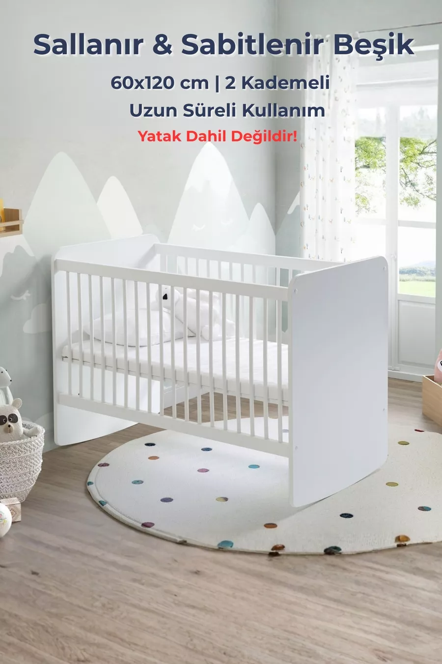 Material: Chipboard Color: White Carrying Capacity: 25 kg Warranty Period: 1 Year Function: Rocking Usage Type: Rocking Rocking Function: Yes Width: 124 cm Inner Mattress Size: 60 x 120 cm Depth: 68 cm Height: 92 cm Theme / Style: Scandinavian Origin: TR Feature: Rocking