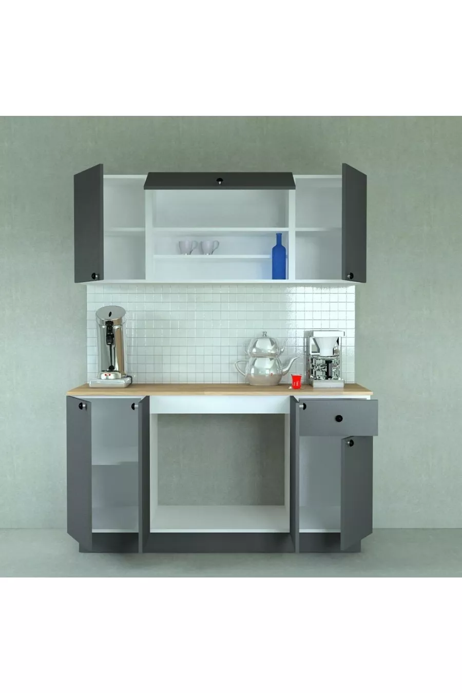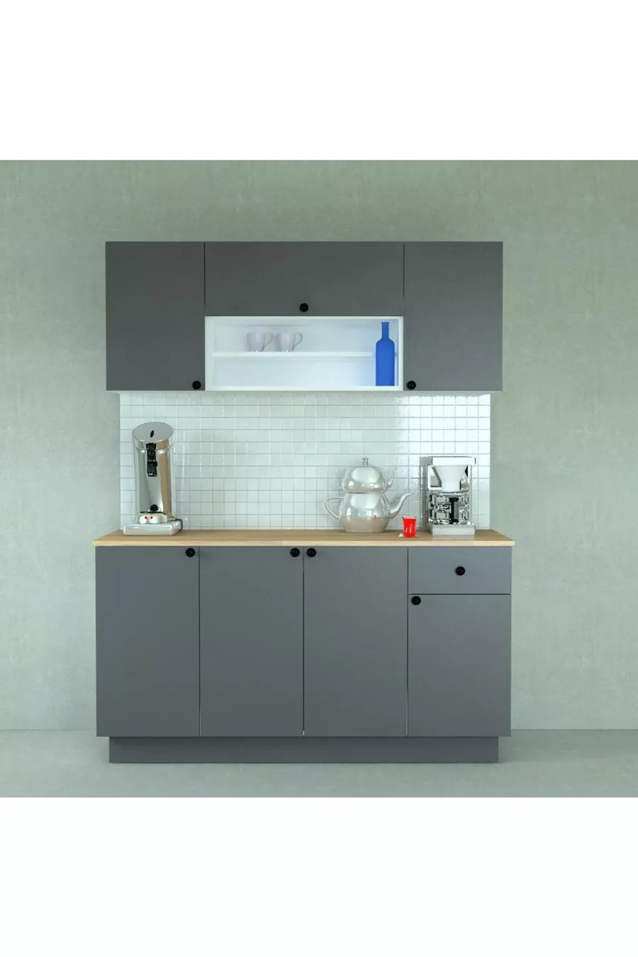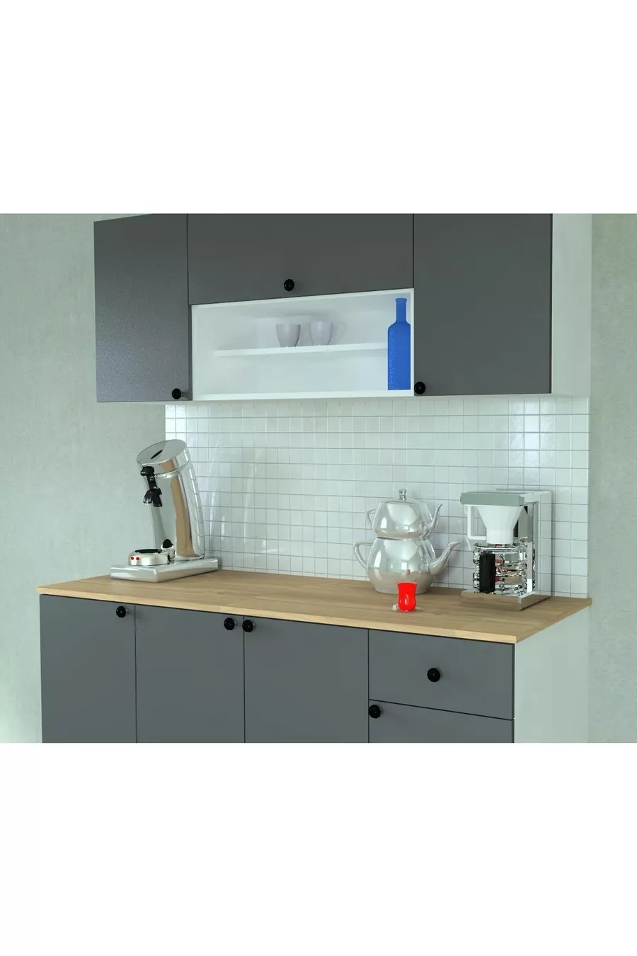 cm Ready-Made Kitchen with Wooden MDF Countertop and Anthracite Doors