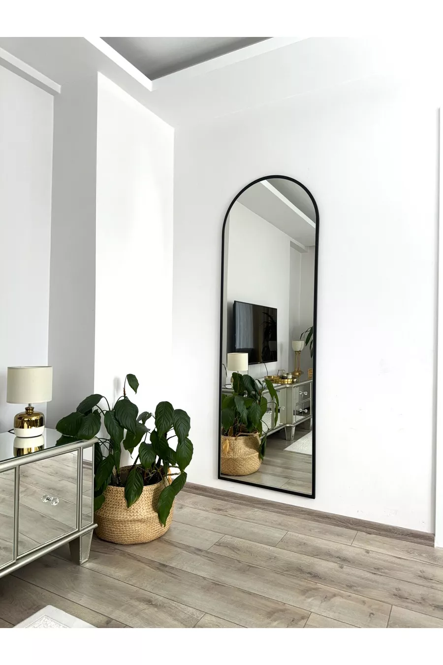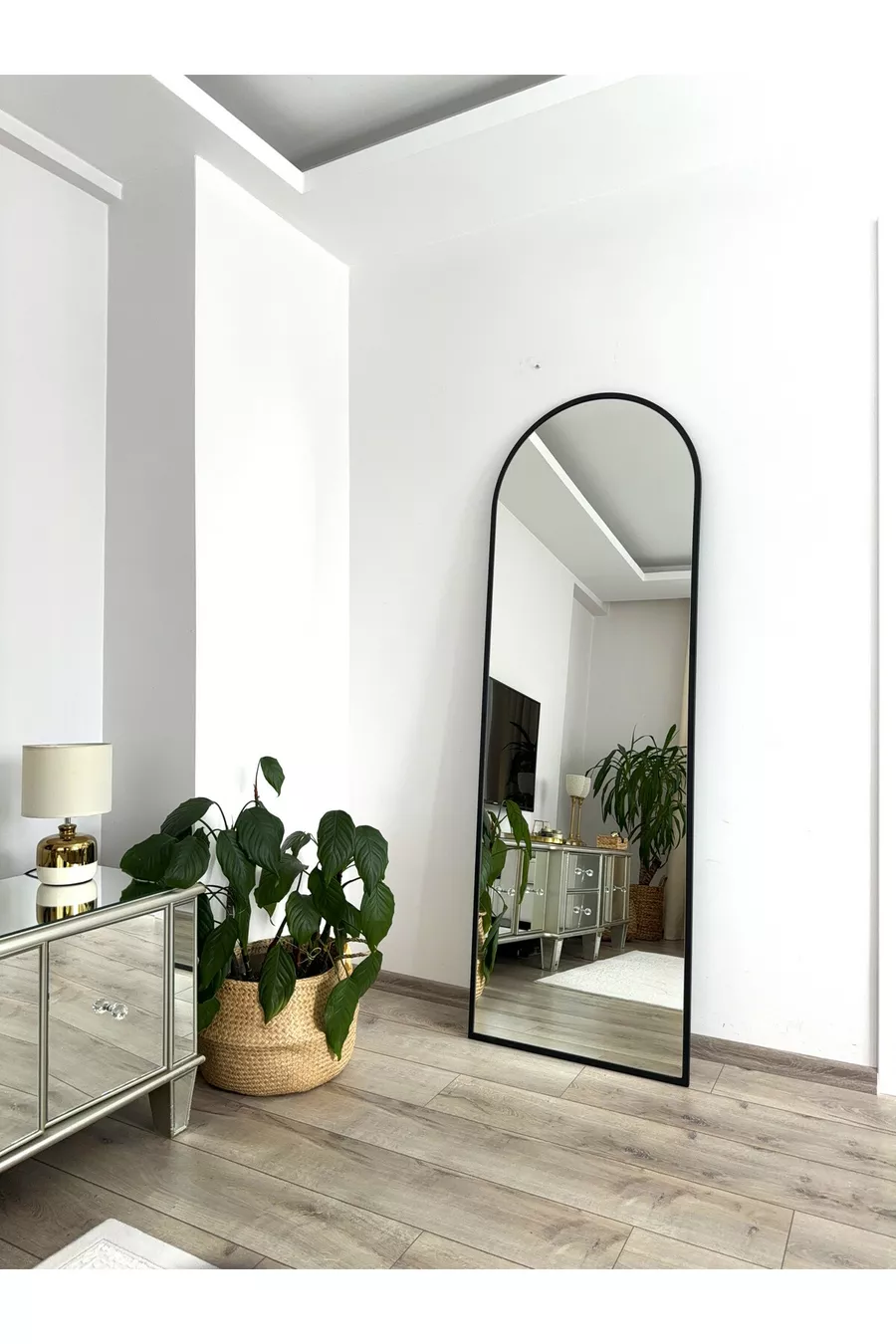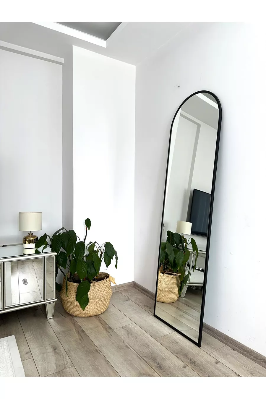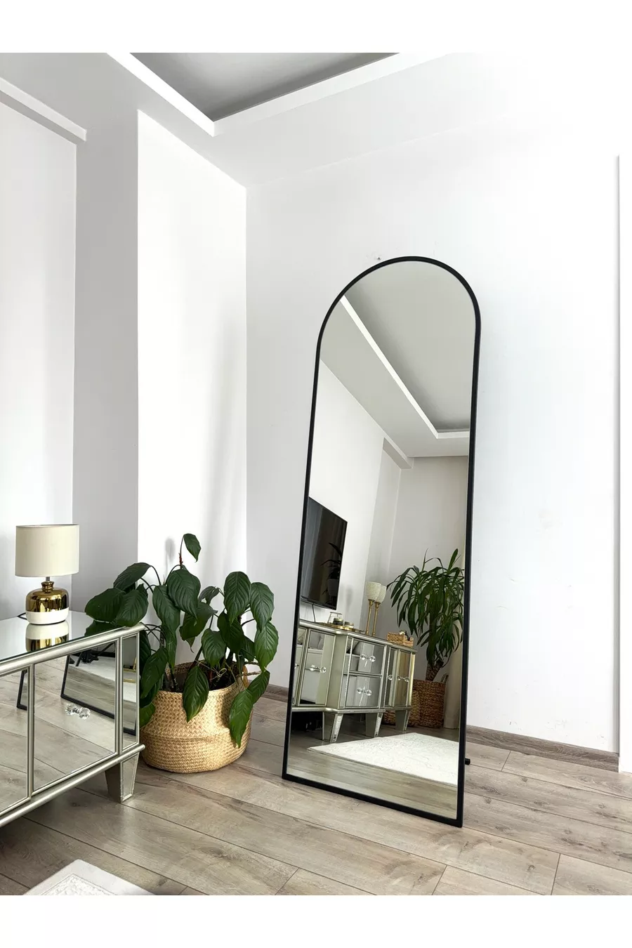 * Cm Full-Length Mirror with Black Metal Frame and Stand