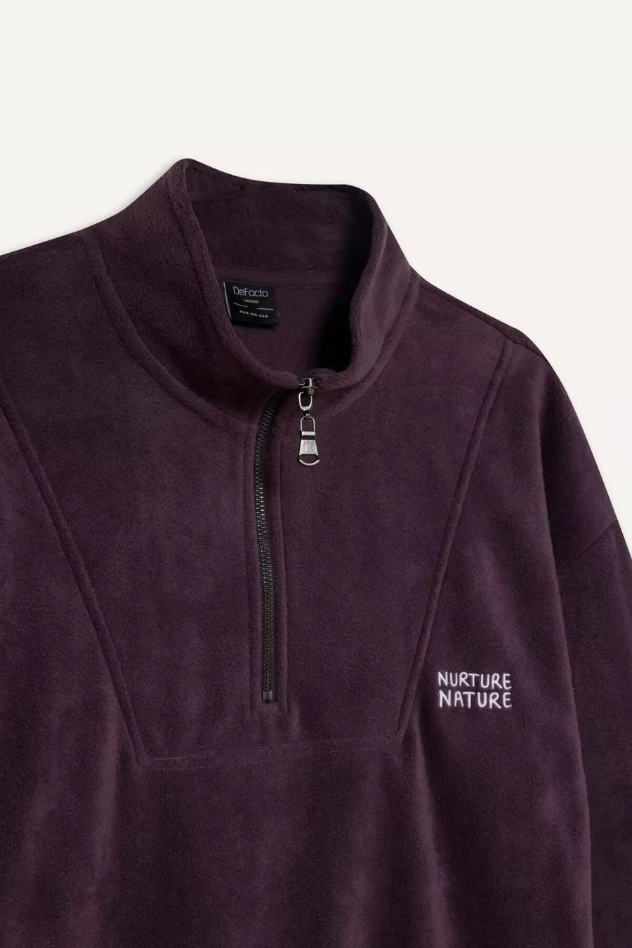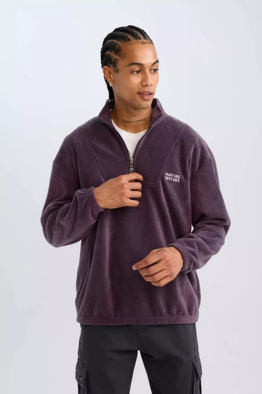 Comfort Regular Fit Relaxed Fit Stand Collar Printed Fleece Sweatshirt AU