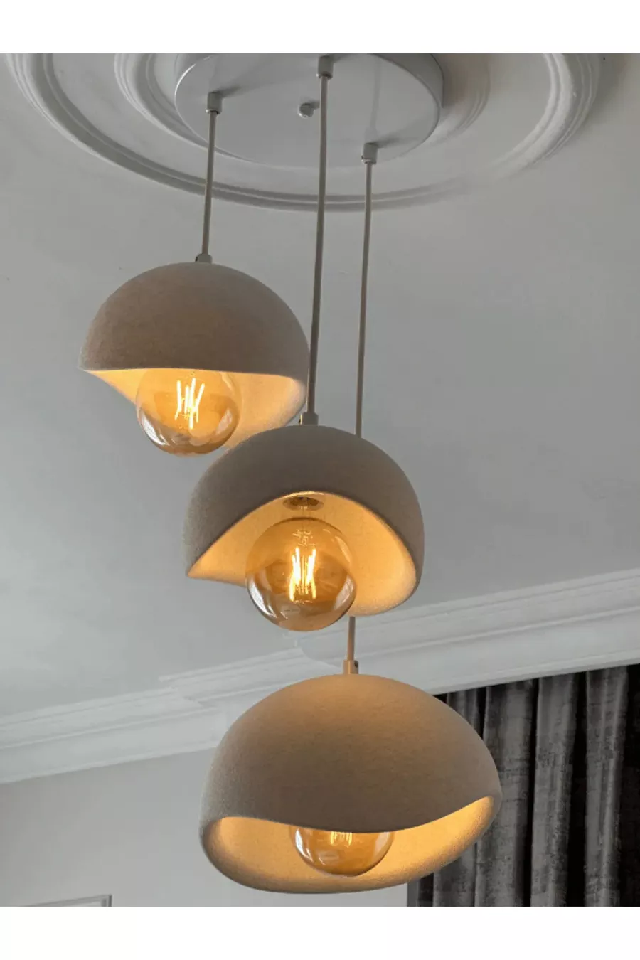 Concrete-Look Scandinavian & Bohemian Style 3-Light Pendant Chandelier - Professional Design, Includes Daylight Bulb