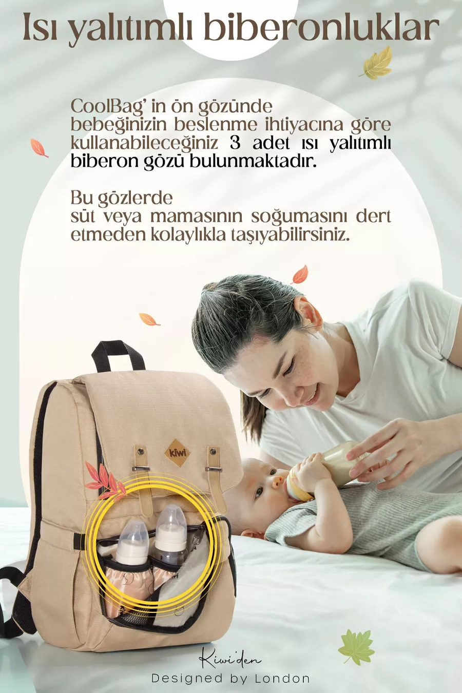 Coolbag Mom Baby Bag - Baby Care Bag - Thermal Waterproof Diaper Changing Pad with Pocket - Latte