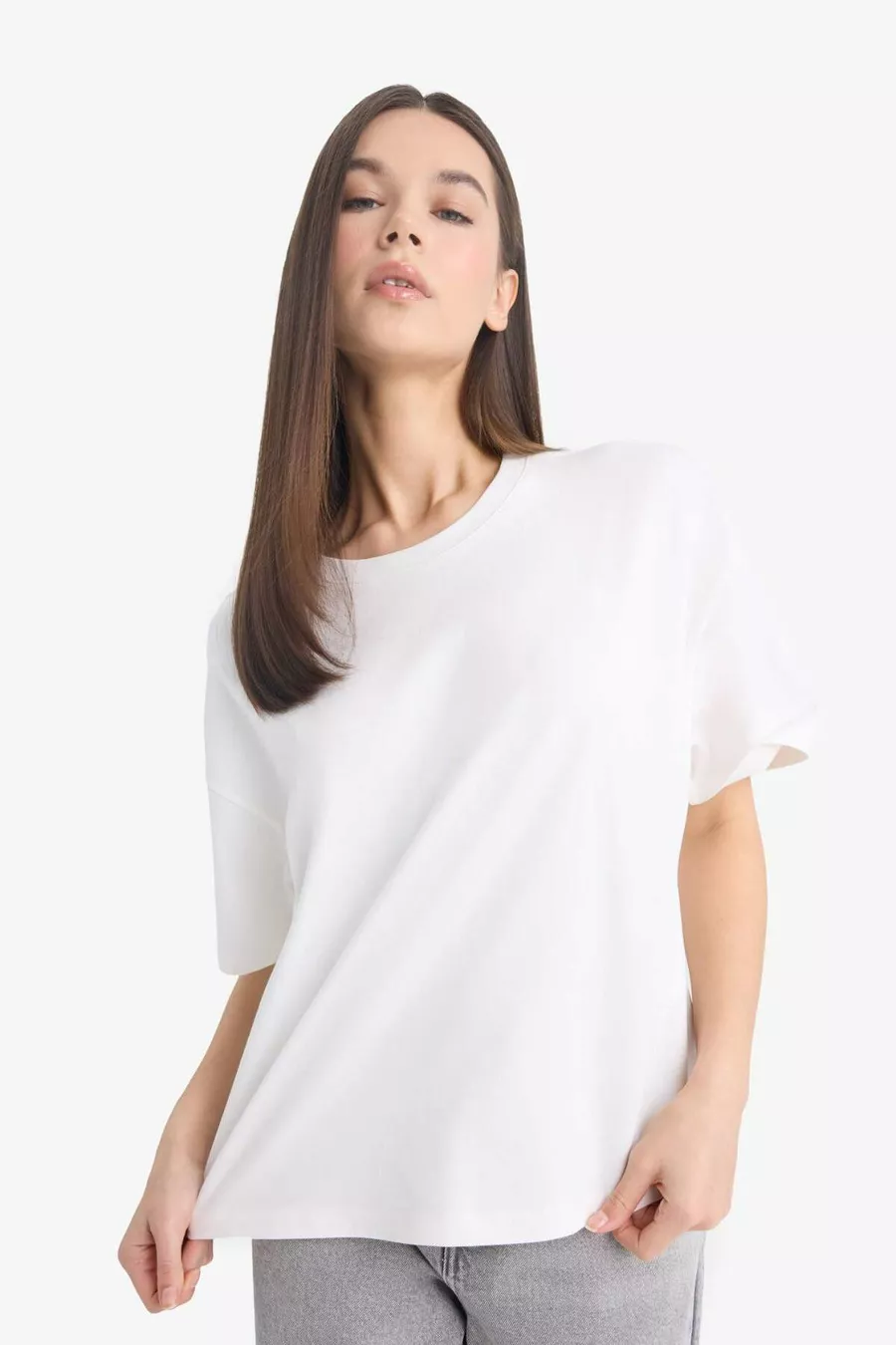 Pattern: Plain Fit: Loose Neck Type: Crew Neck Material: Cotton Fabric Type: Knitted Sleeve Type: Short Sleeve Color: White Pocket: None Sleeve Length: Short Length: Standard Occasion: Casual Sustainability Detail: No Silhouette: Basic Material Composition: 100% Cotton Washing Instructions: T44 Origin: TR