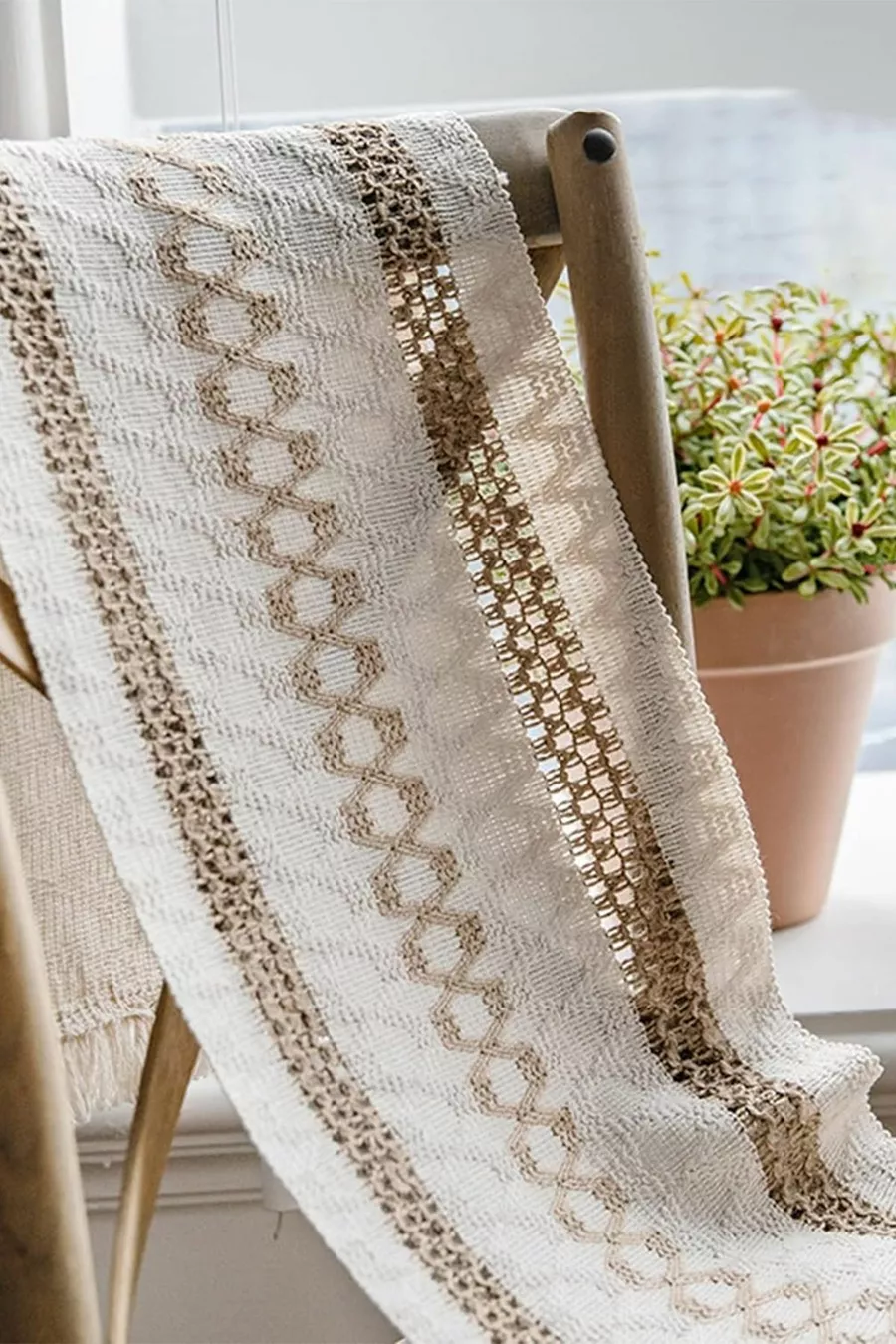Size/Dimension: 37 x 145 Shape: Rectangle Color: Cream Material: Cotton Number of Pieces: 1 Washing Instructions: Machine washable at 30°C Material Composition: 100% Cotton Origin: TR