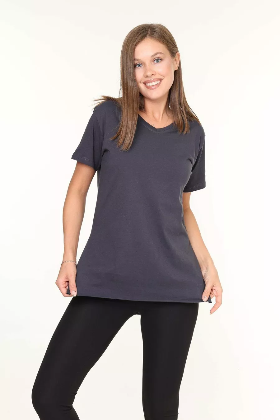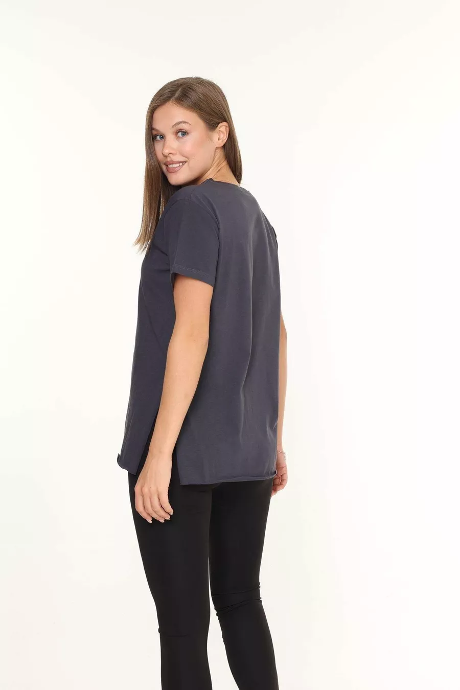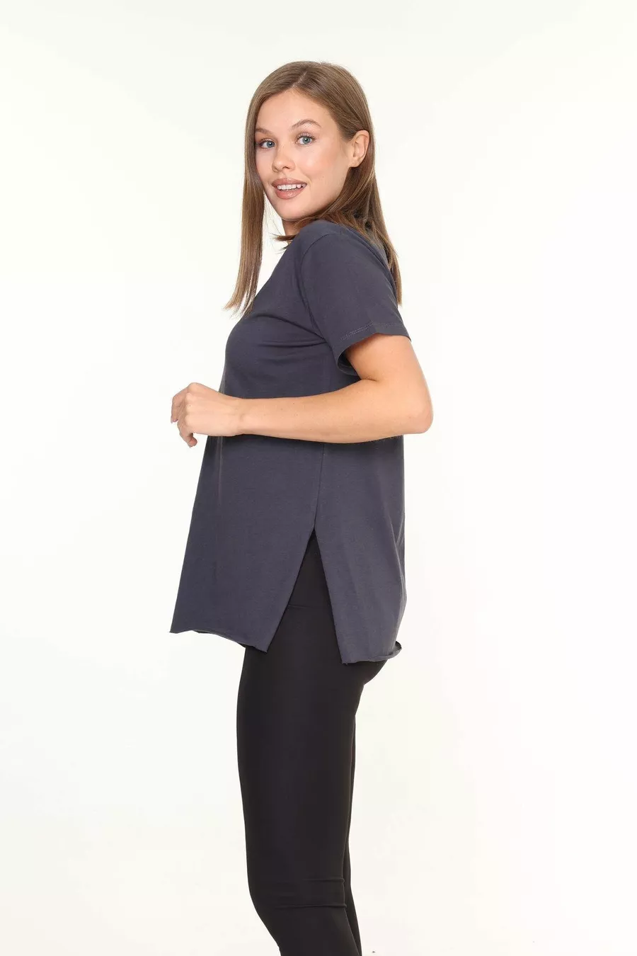 Pattern: Plain Fit: Asymmetric Neck Type: V Neck Material: 100% Organic Cotton Fabric Type: Knitted Sleeve Type: Short Sleeve Color: Gray Package Content: Single Technique: None Pocket: No pockets Product Detail: With slit Sleeve Length: Short Collection: Basic Length: Long Occasion: Casual/Everyday Additional Feature: Straight cut Print/Embroidery Technique: Unprinted Sustainability Detail: No Weave Type: Supima Silhouette: Asymmetric Persona: Cool & Comfort Material Composition: 100% Cotton Washing Instructions: Follow the instructions on the product's inner label Season: All Seasons Origin: TR Box Status: No box
