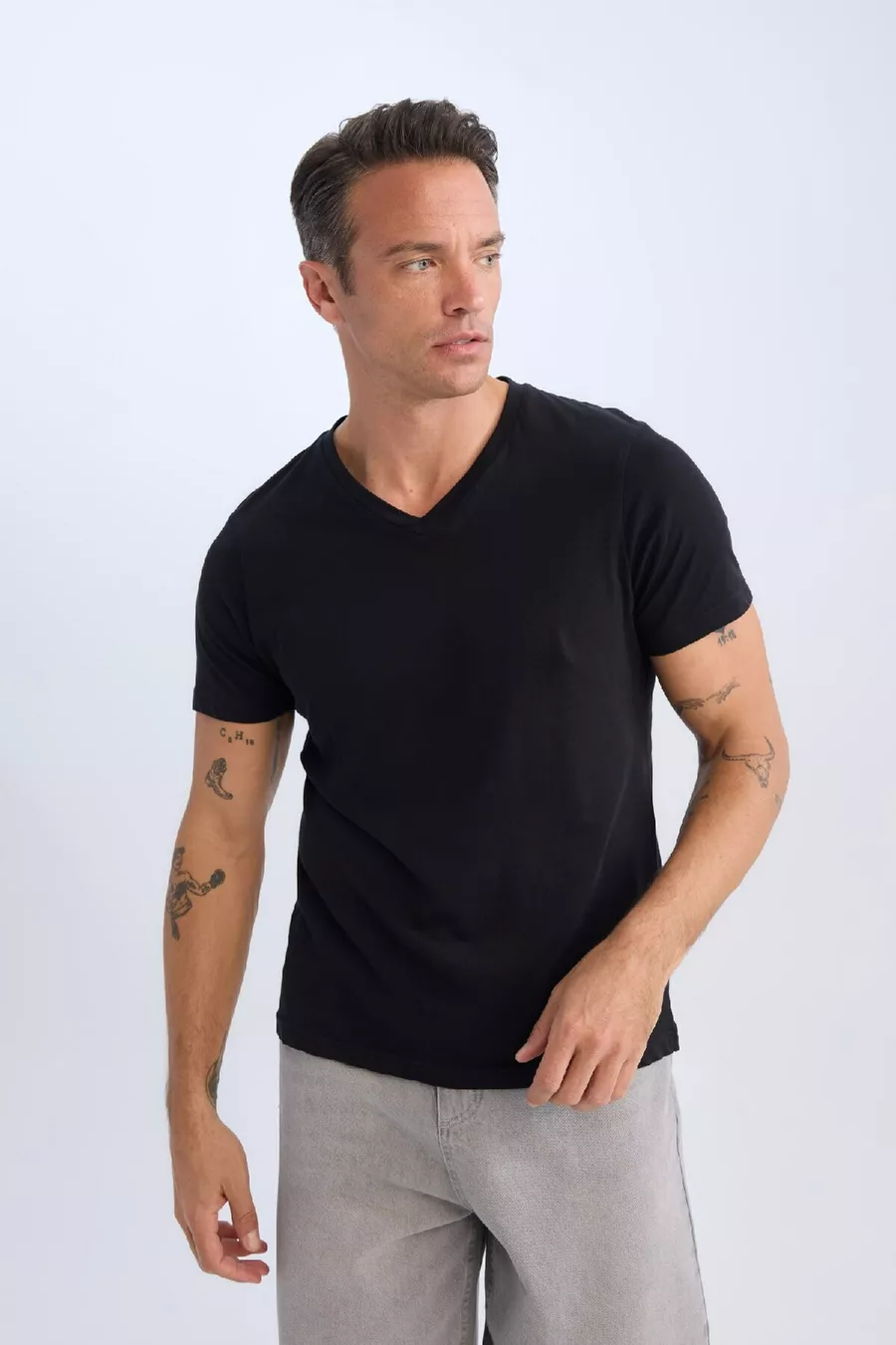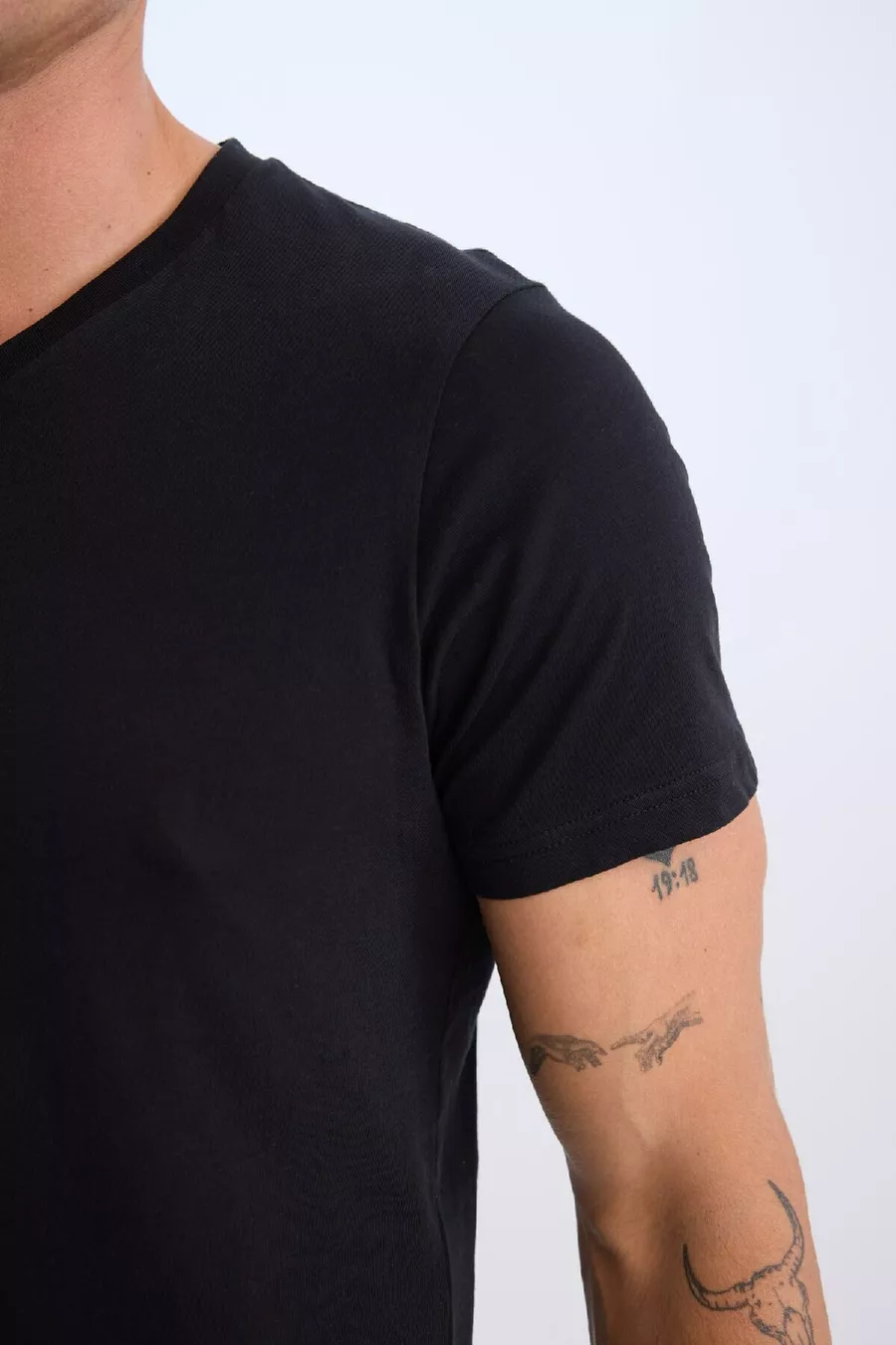 Pattern: Plain Fit: Regular Neck Type: V-Neck Material: 100% Cotton Fabric Type: Knit Sleeve Type: Short Sleeve Color: Black Technique: None Pocket: No Pocket Sleeve Length: Short Collection: Basic Length: Standard Occasion: Casual Sustainability Detail: No Weaving Type: Suprem Silhouette: Basic Material Composition: 100% Cotton Washing Instructions: T44 Origin: TR Box Condition: No Box