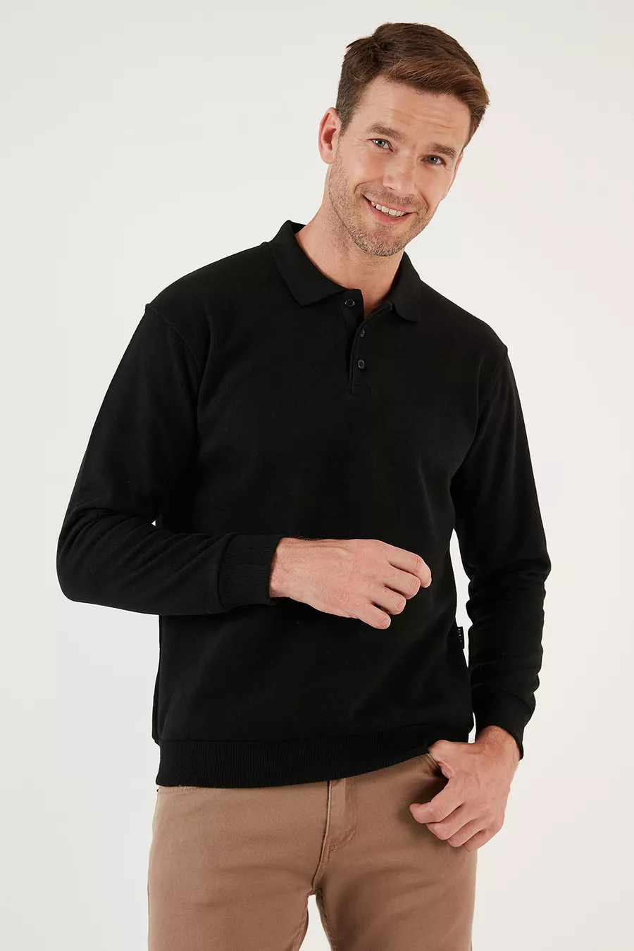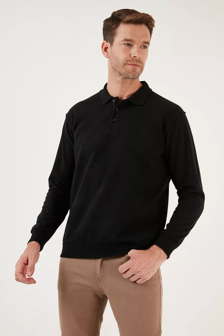 Cotton Regular Fit Buttoned Polo Collar Sweater Men’s Sweater